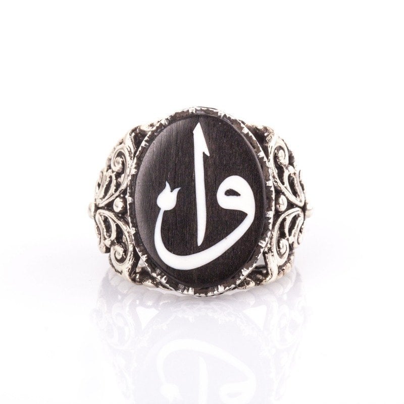 Abanoz Üzeri Fil Dişi Vav Elif Kakma El İşi Yüzük |