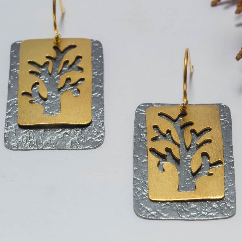 Ağaç Desenli Gümüş Küpe