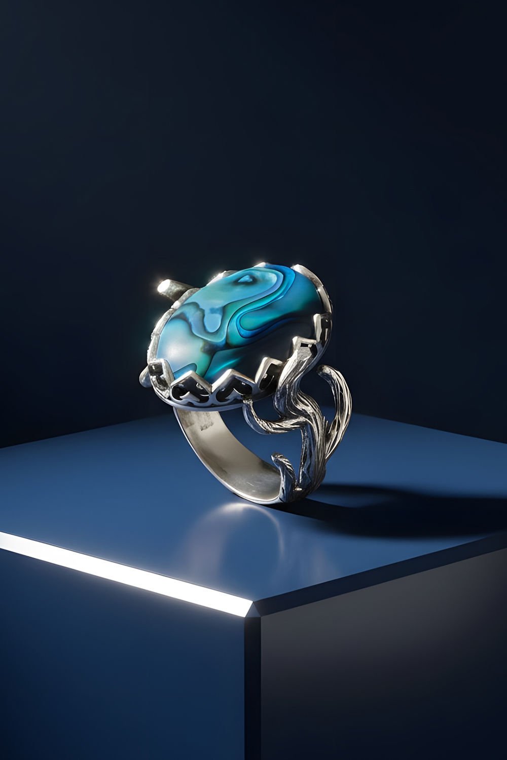 Ağaç Model Okyanus Sedefi Taşlı El İşi Yüzük |