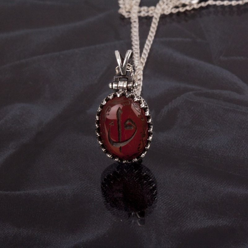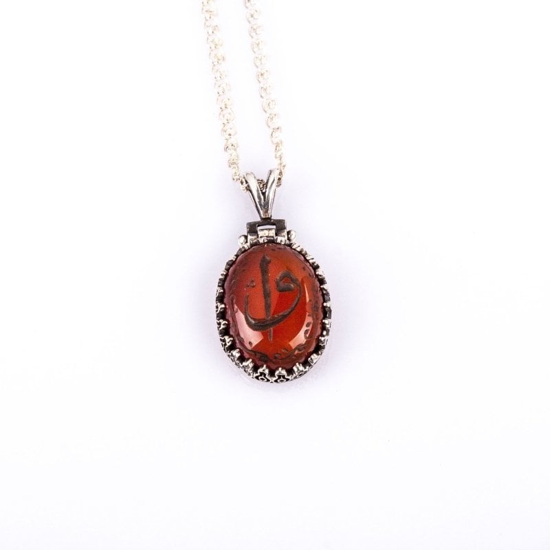 Akik Taşı Üzeri Kazıma El İşi Gümüş Kolye