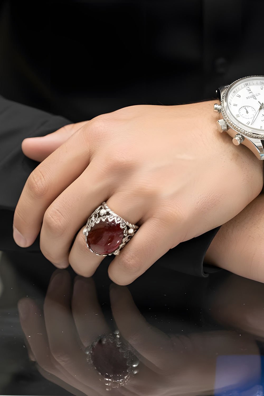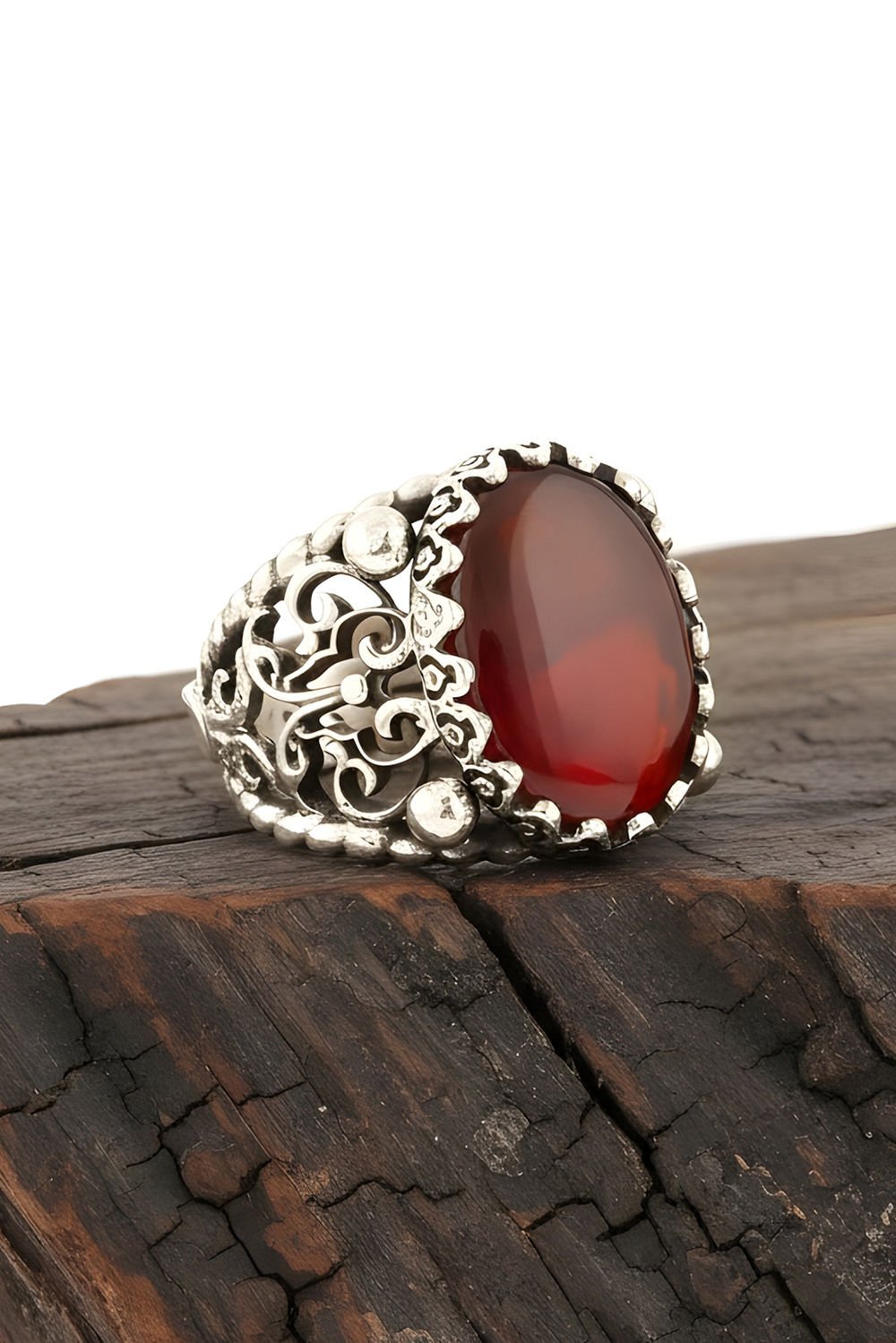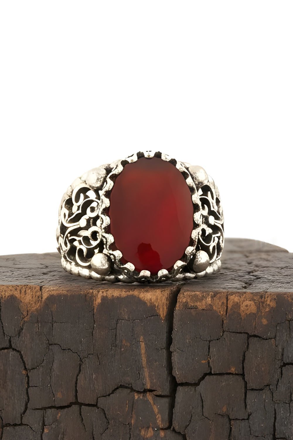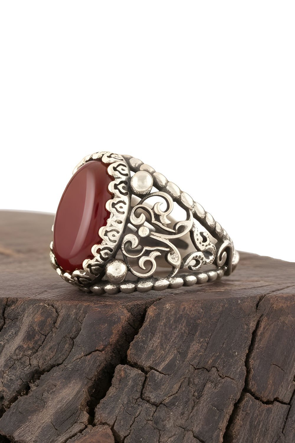 Doğal Akik Taşlı ve El İşçiliği ile Üretilmiş 925 Ayar Gümüş Erkek Yüzük - Maskülen Zarafetin İfadesi
