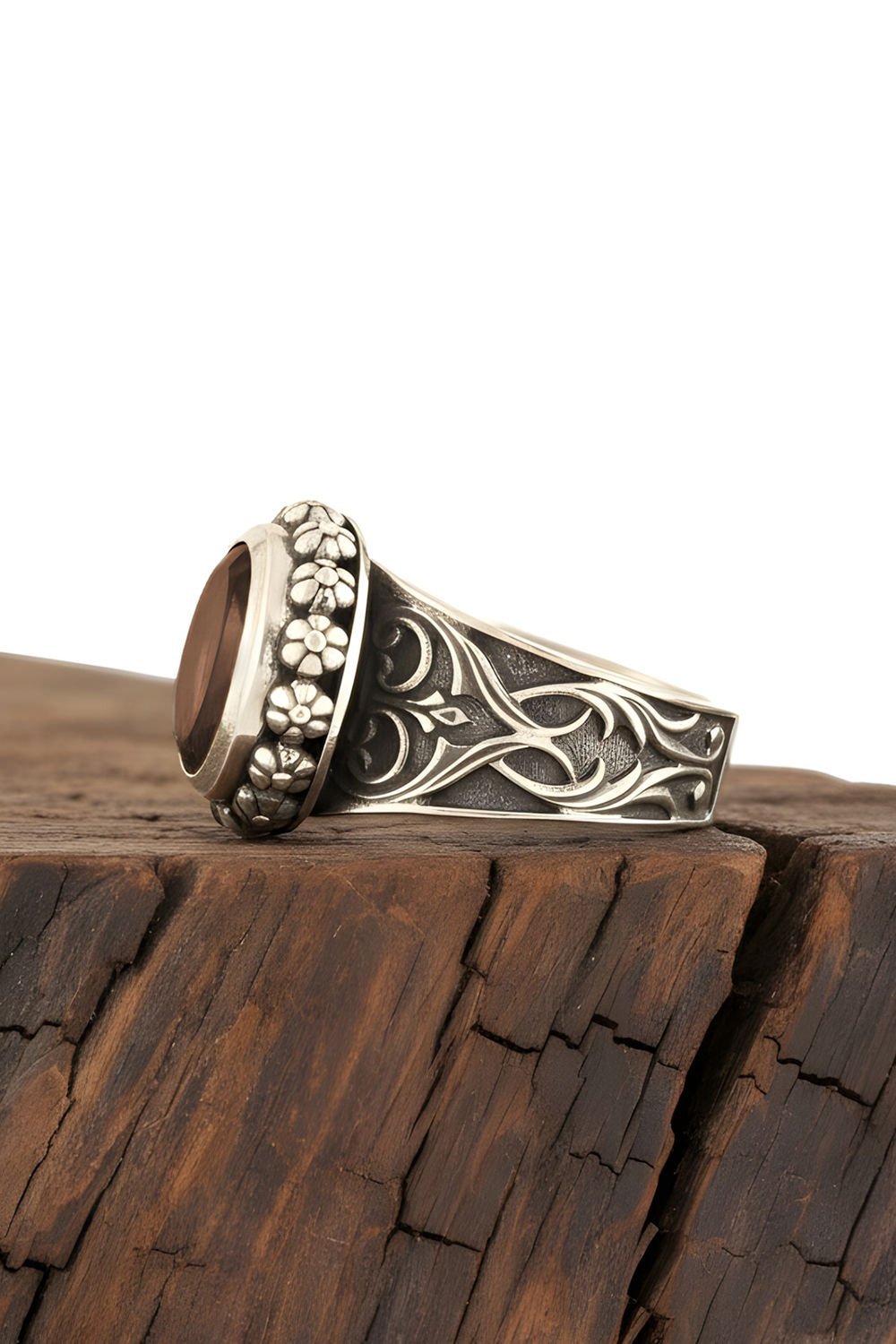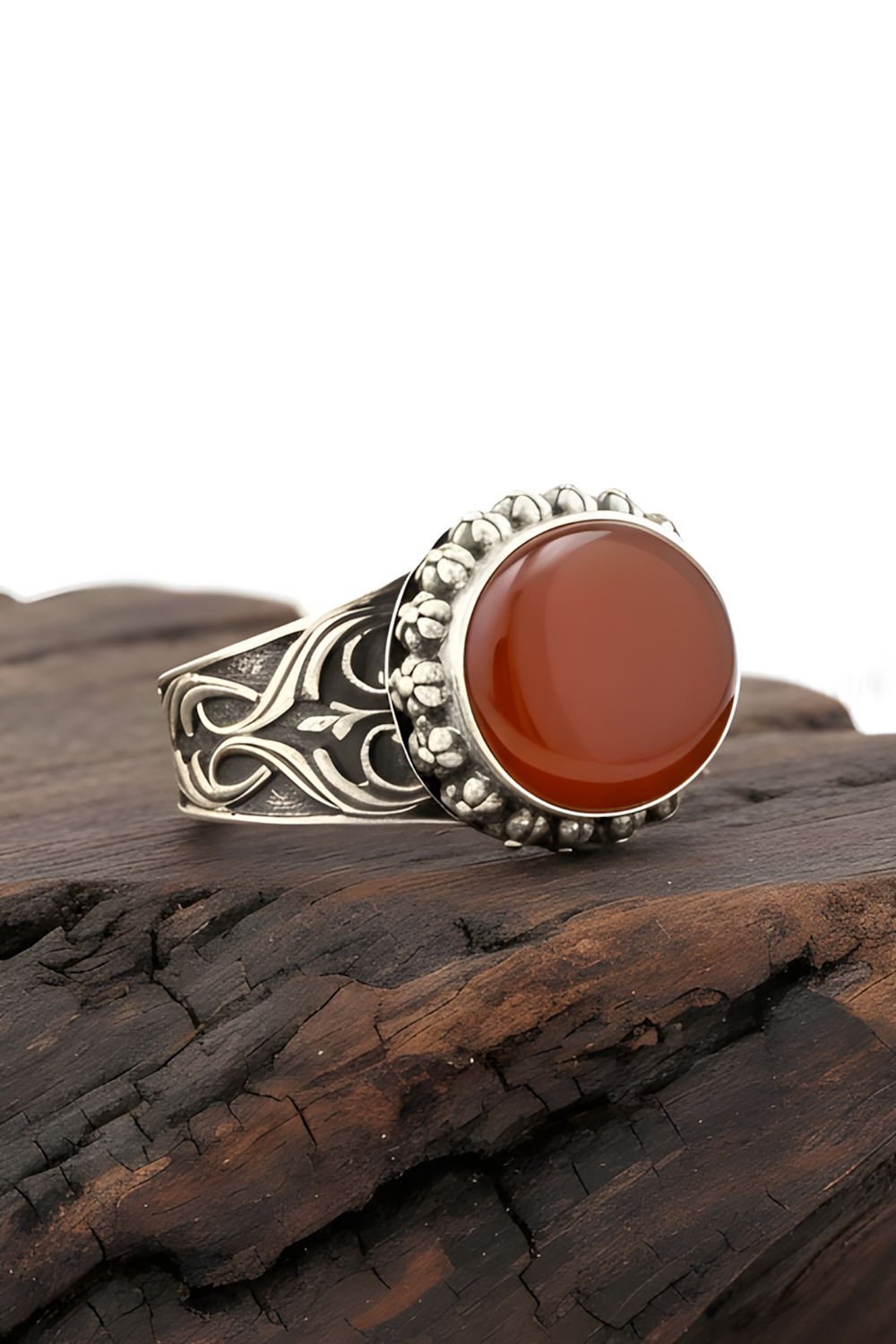 Natural Akik Taşlı Usta El İşçiliği ve Gümüş Erkek Yüzük: Doğanın Gücü Parmaklarınızda