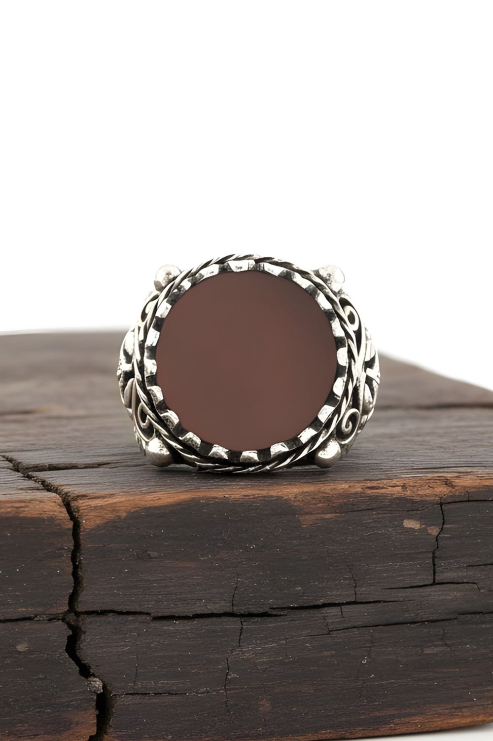 Natural Akik Taşlı Usta El İşçiliği ve Gümüş Erkek Yüzük: Doğanın Gücünü Parmaklarınızda Hissedin