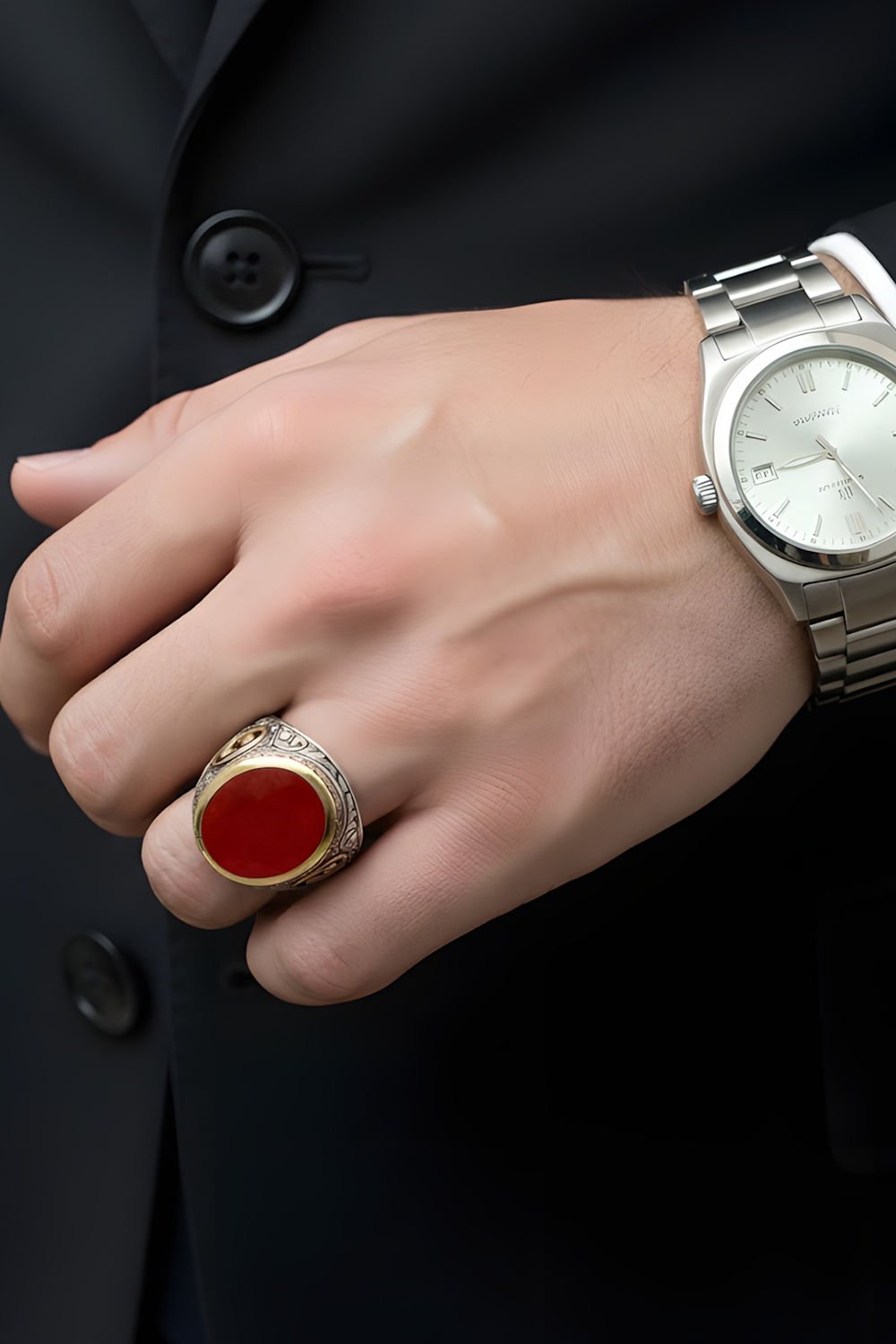 Hakiki ve orijinal doğal taşlar kullandığımız yüzüklerin bu modelinde klasik rengiyle Akik taşını kullanıyoruz.