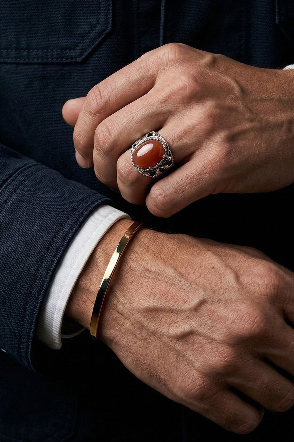 Ürün Tanıtımı: Asaletin simgesi zambak motifleri ile doğanın enerjisini taşıyan akik taşının kusursuz uyumu bu özel tasarımda buluştu. 925 ayar gümüş kullanılarak tamamen el işçiliği ile üretilen bu erkek yüzüğü, hem günlük stilinizi tamamlayacak hem de özel günlerinizde vazgeçilmez bir aksesuar olacak.