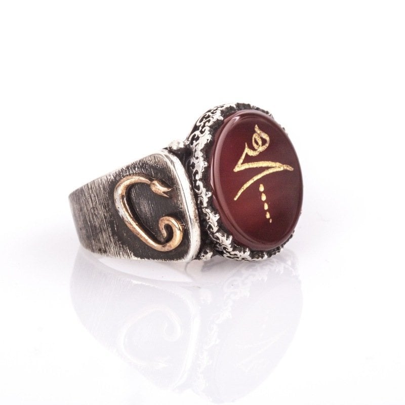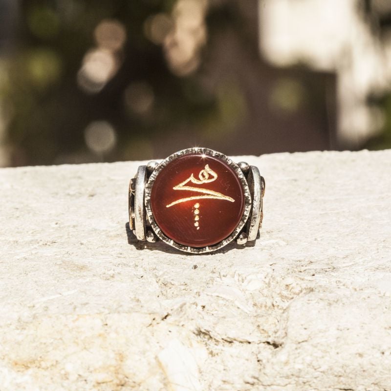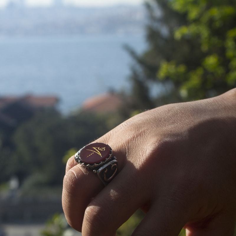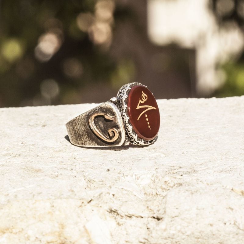 Akik Üzeri Hiç Kazıma El İşi Gümüş Yüzük |