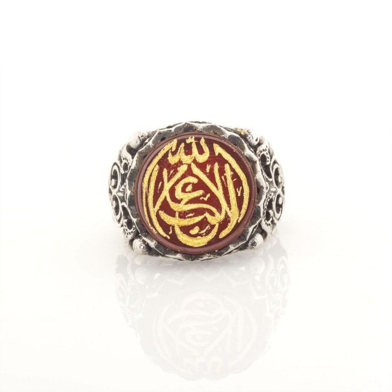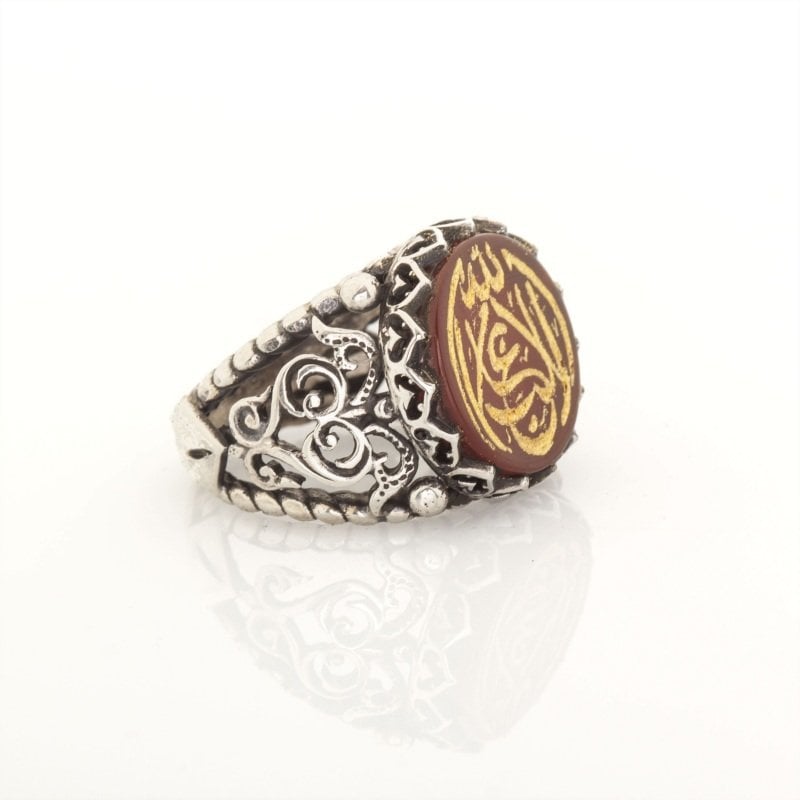 Akik Üzeri La Galibe İllallah Kazıma El İşi Yüzük |