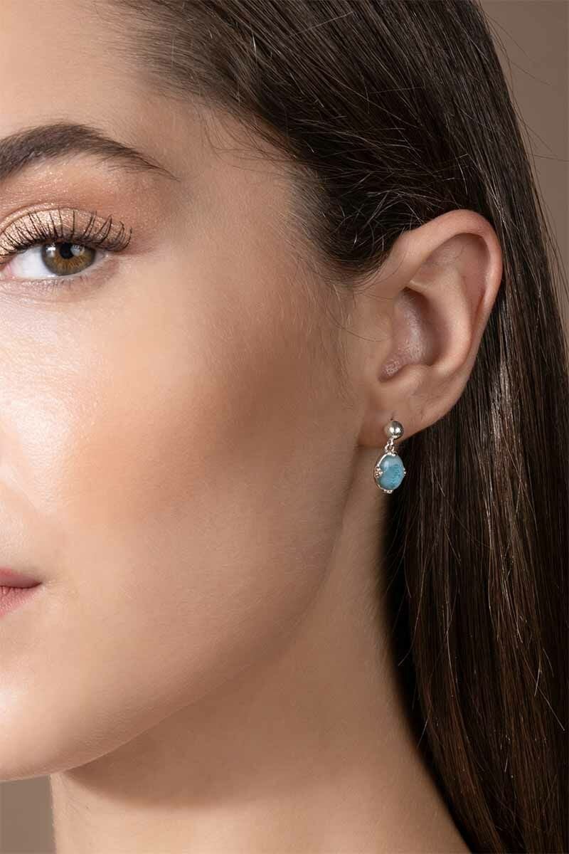 Akuamarin Taşlı Minimal Model El İşçiliği Gümüş Küpe ile doğanın serin esintisini stilinize taşıyın. Minimal tasarımı ve orijinal taşın doğallığı ile öne çıkın.