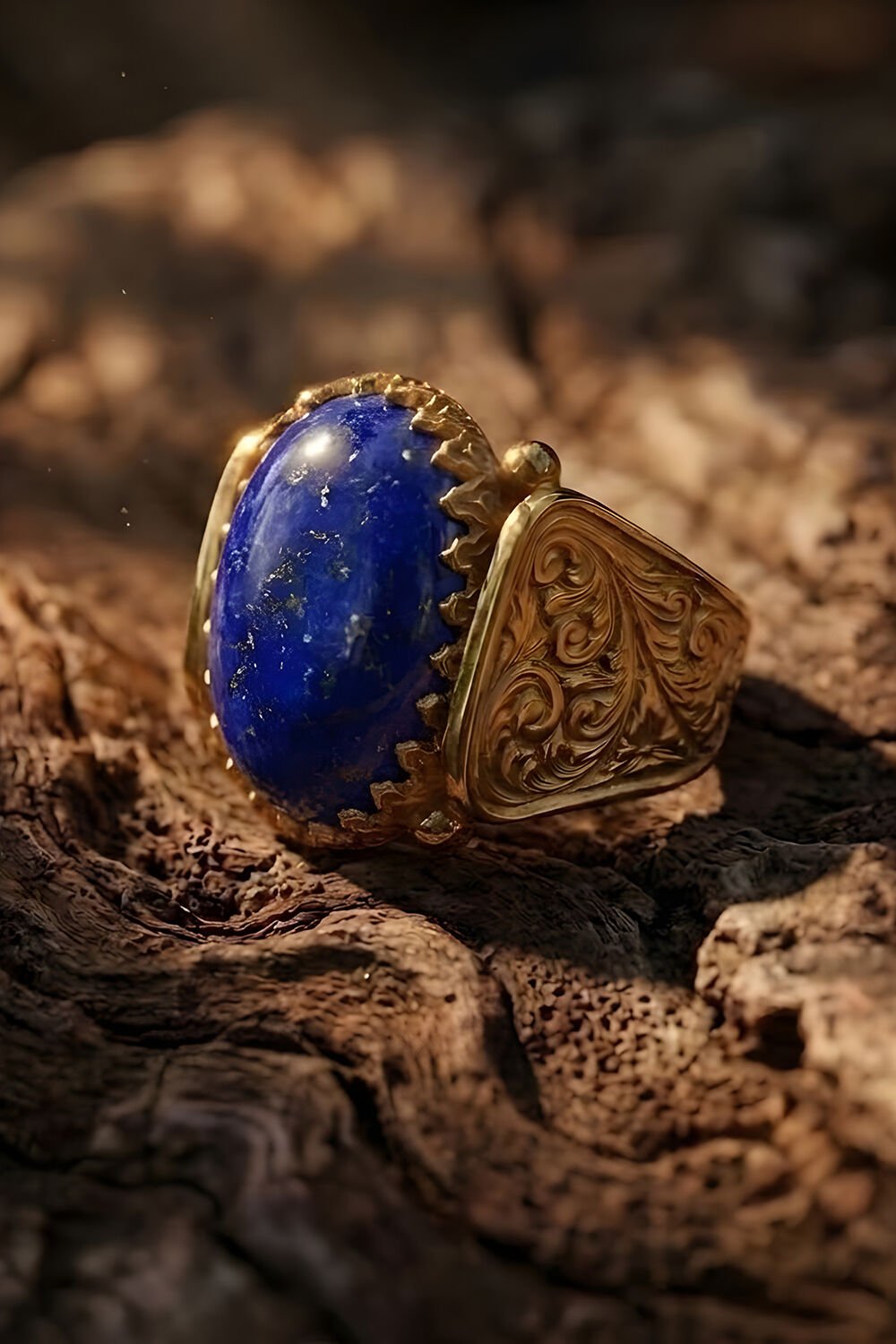 Ürün Tanıtımı: Asaletin ve bilgeliğin simgesi olan Lapis Lazuli, usta ellerde hayat bulan eşsiz bir tasarımla parmağınıza taşınıyor. Tamamen el işçiliği ile üretilen bu özel erkek yüzüğü, 925 ayar gümüş üzerine uygulanan yüksek kalitede altın kaplama detaylarıyla hem klasik hem de modern bir duruş sergiliyor.