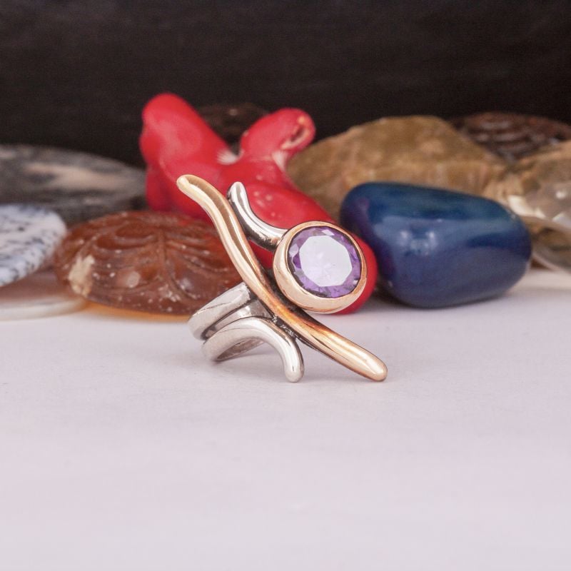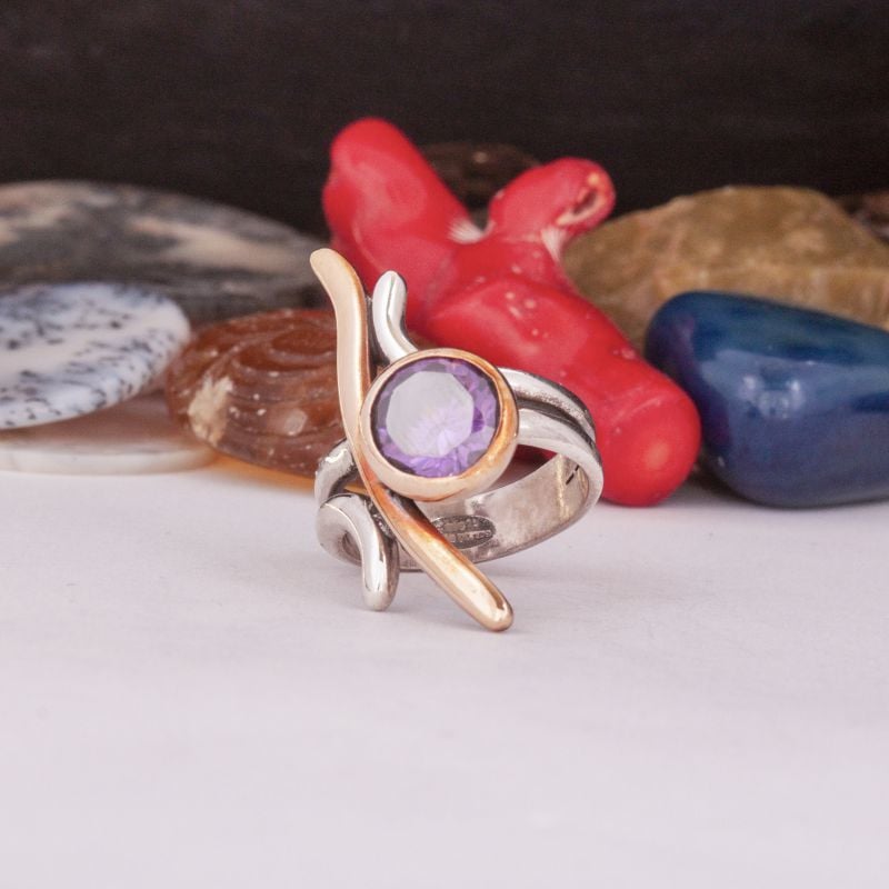 Ametist Zirkon Taşlı El İşi Özel Tasarım Yüzük |