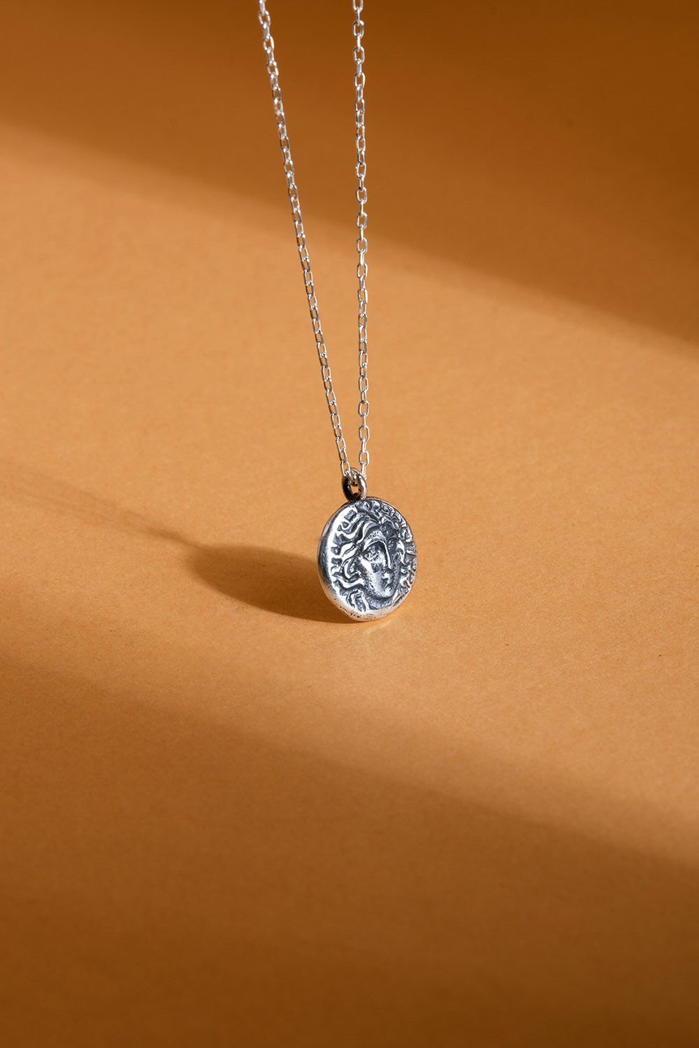 Minimalizm akımı ile Antik Roma'nın figürlerini birleştirdiğimiz gümüş kolye modelimiz. Kolye, 925 ayar gümüş ve kendi atölyemizin işçiliği ile hazırlanmıştır. Sipariş verildikten sonra 1-2 iş günü içerisinde kargoya verilir.