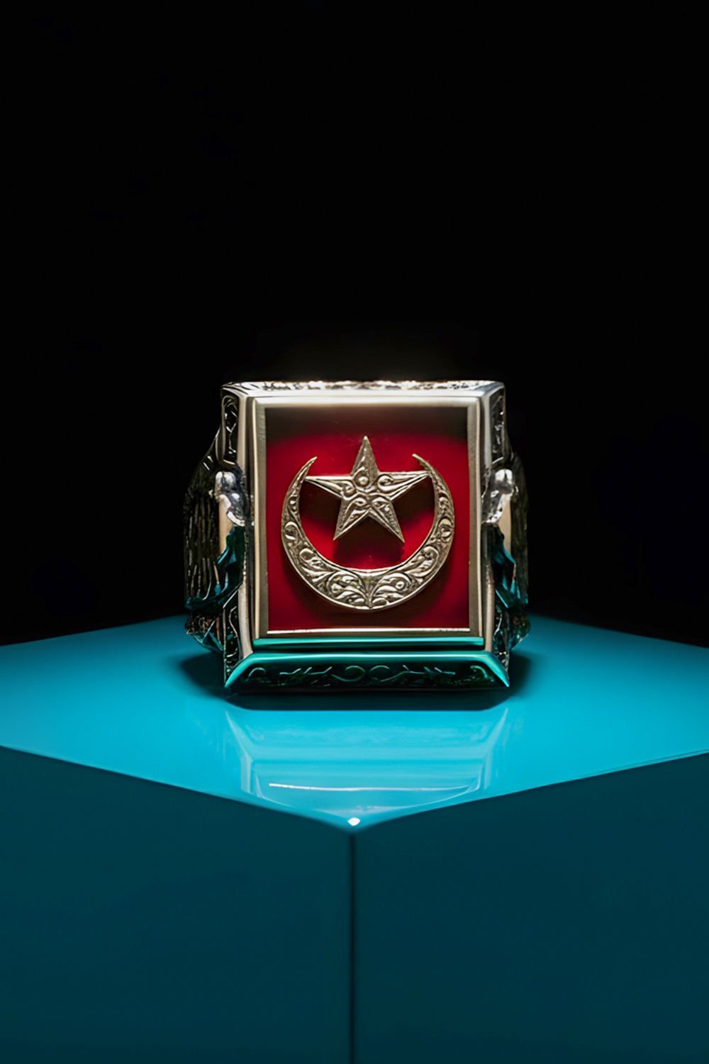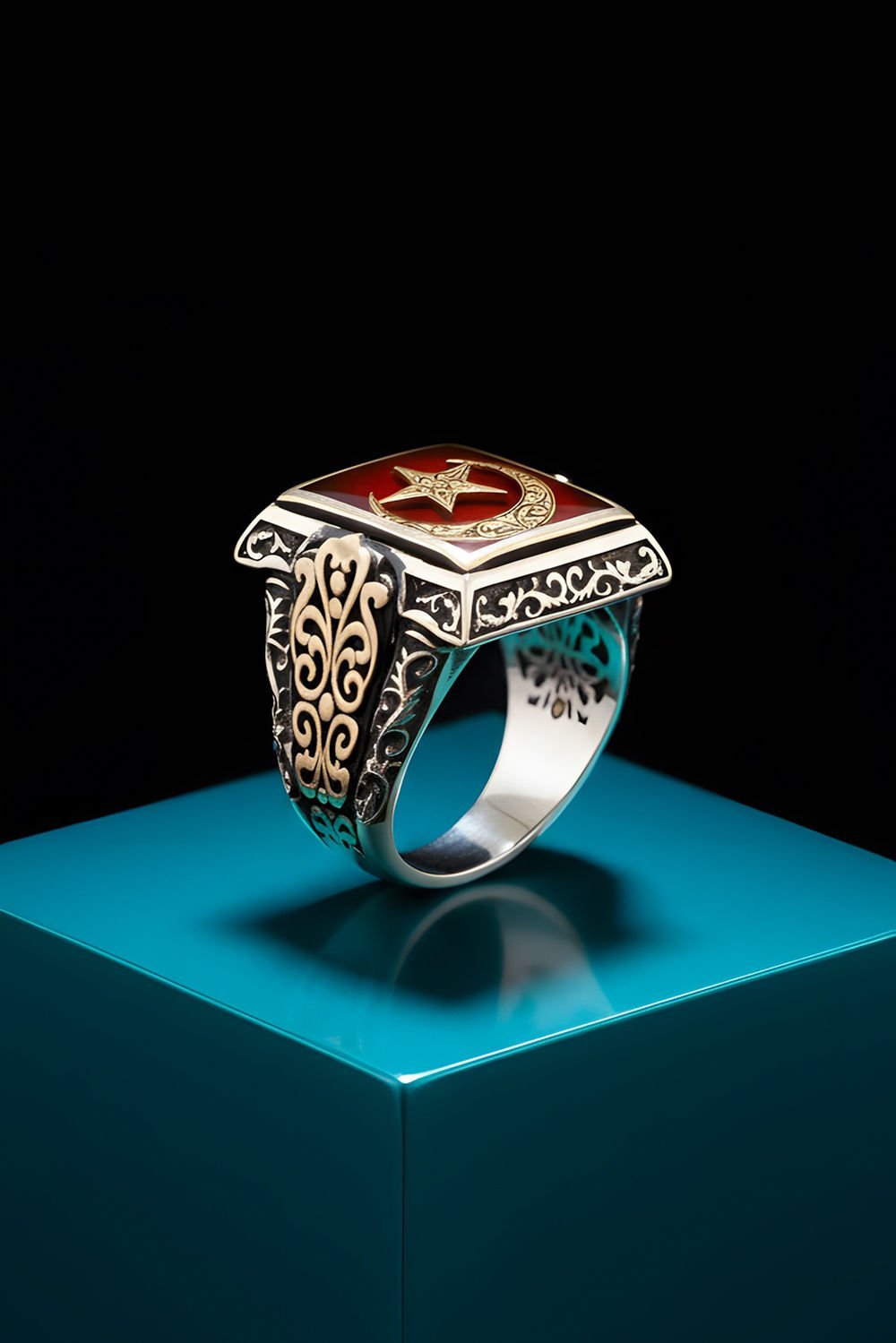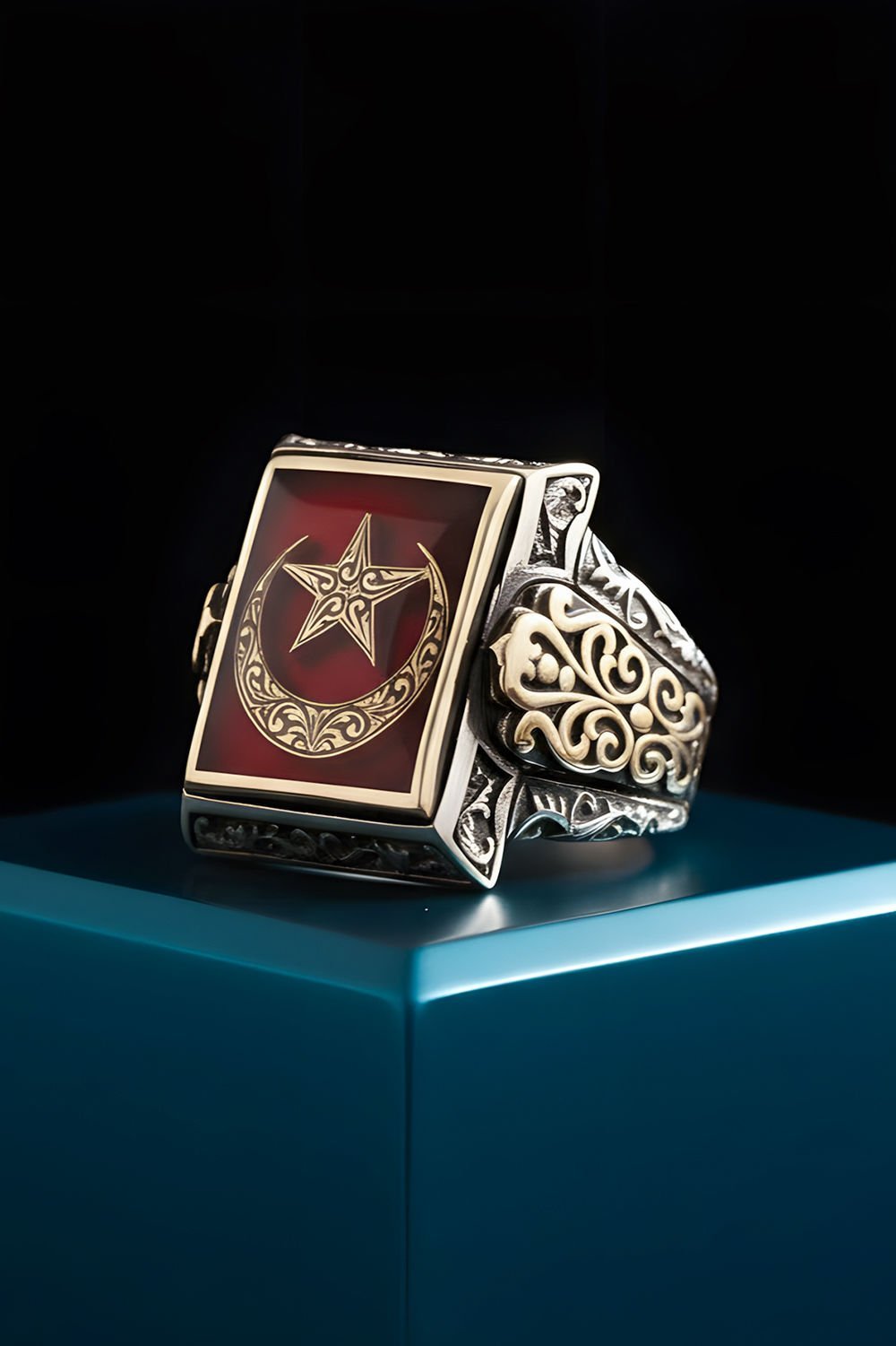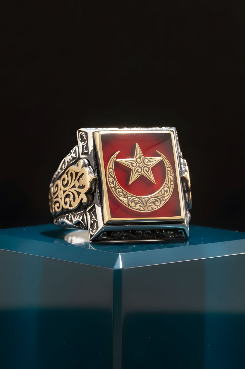 Ay Yıldız Mineli Dikdörtgen Alemdar Model Yüzük