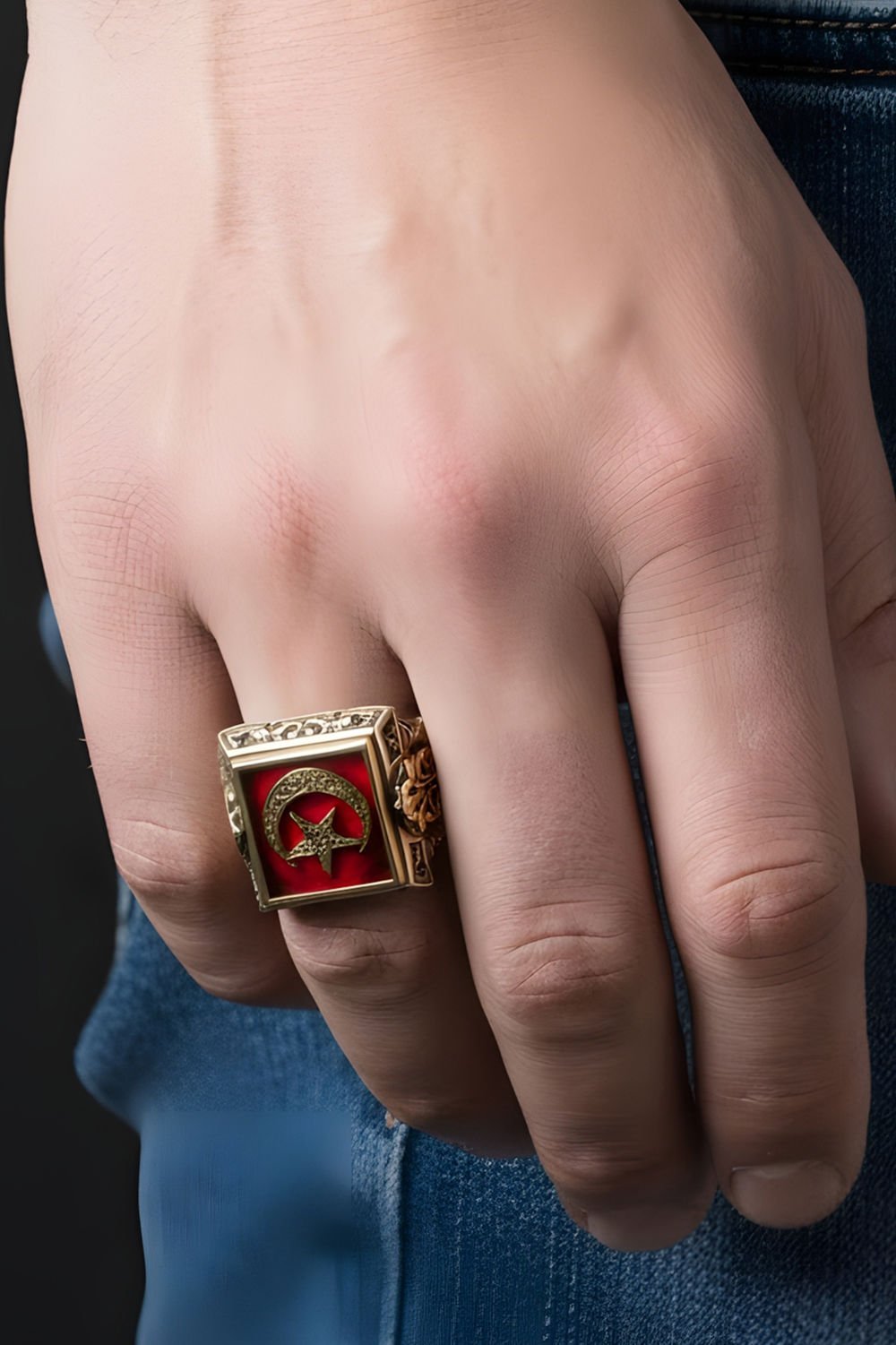 Ay Yıldız Mineli Dikdörtgen Alemdar Model Yüzük |