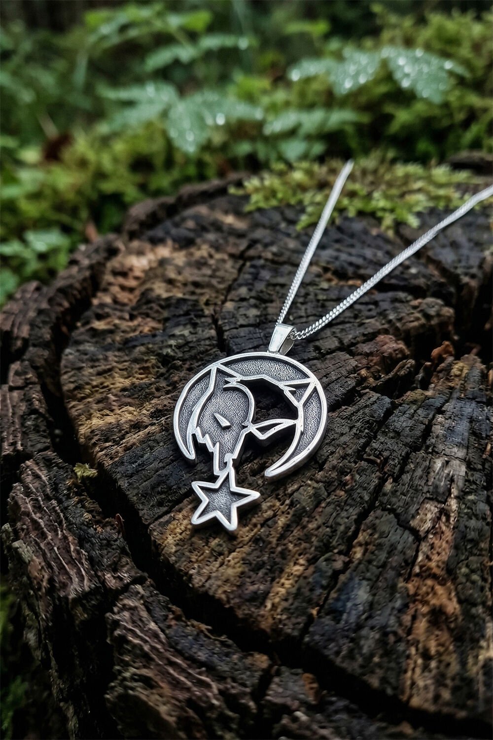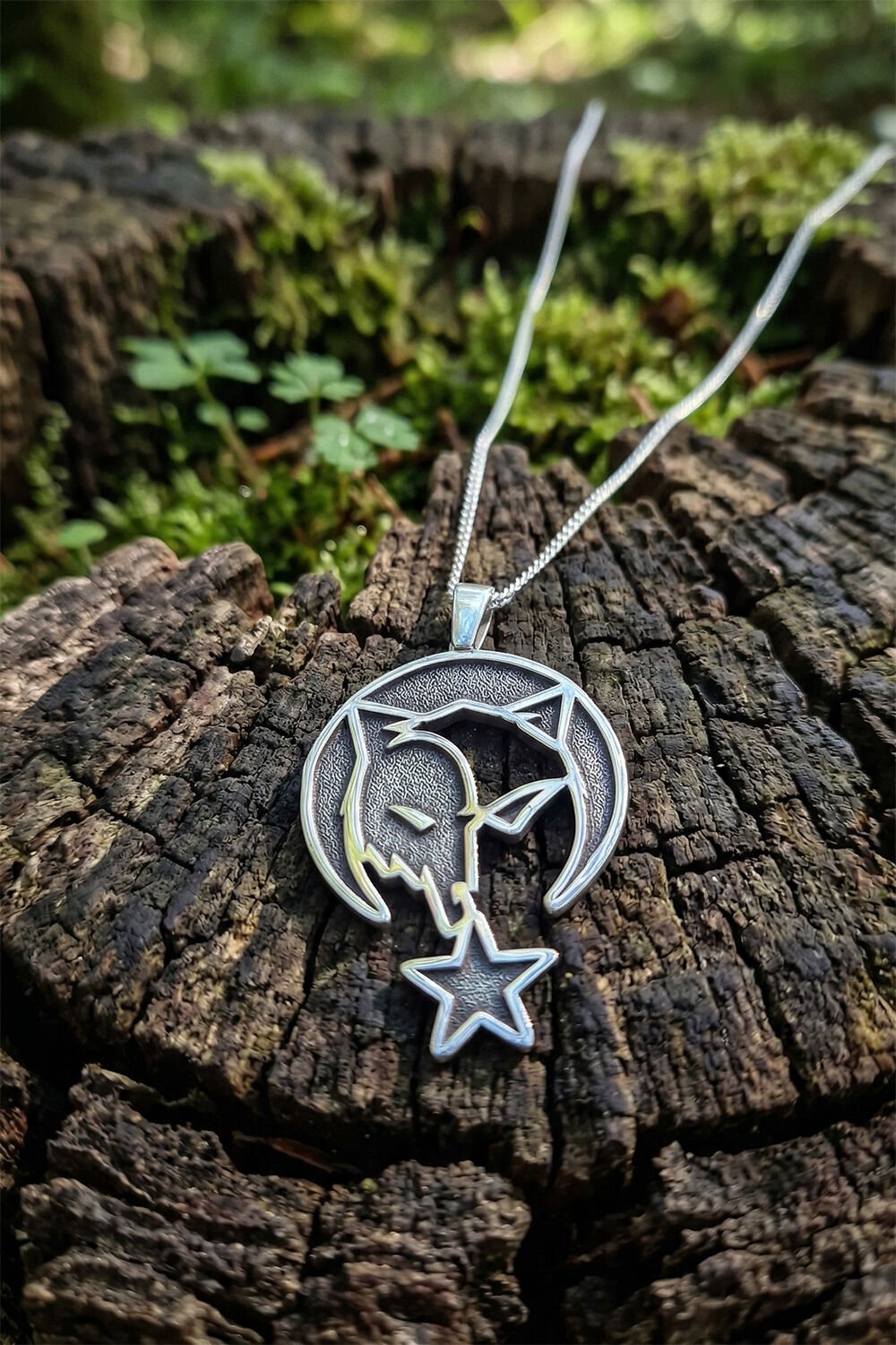 Ay Yıldız İçine Kurt Model Gümüş Kolye