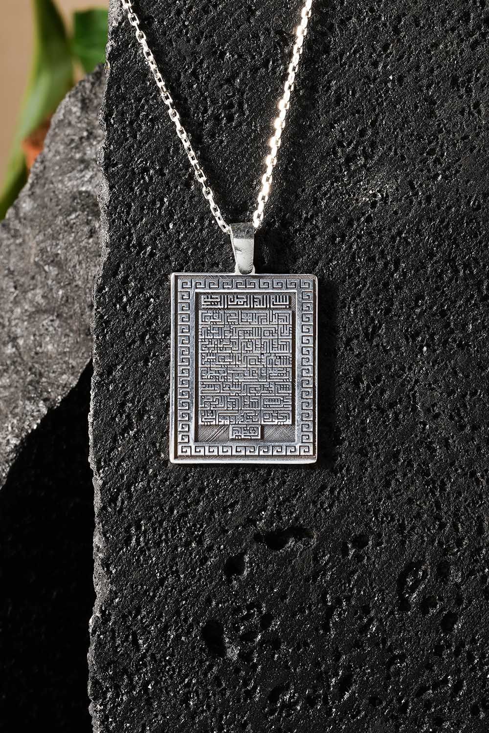 Dualı Çift Taraflı Gümüş Unisex Kolye - Ayetel Kürsi, İhlas, Felak, Nas, Kafirun Suresi