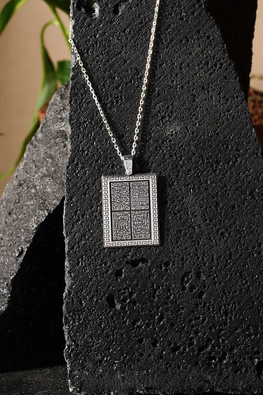 Ayet-el Kursi ve Dört Kul Sureleri Kazıma Çift Taraflı Unisex Kolye |