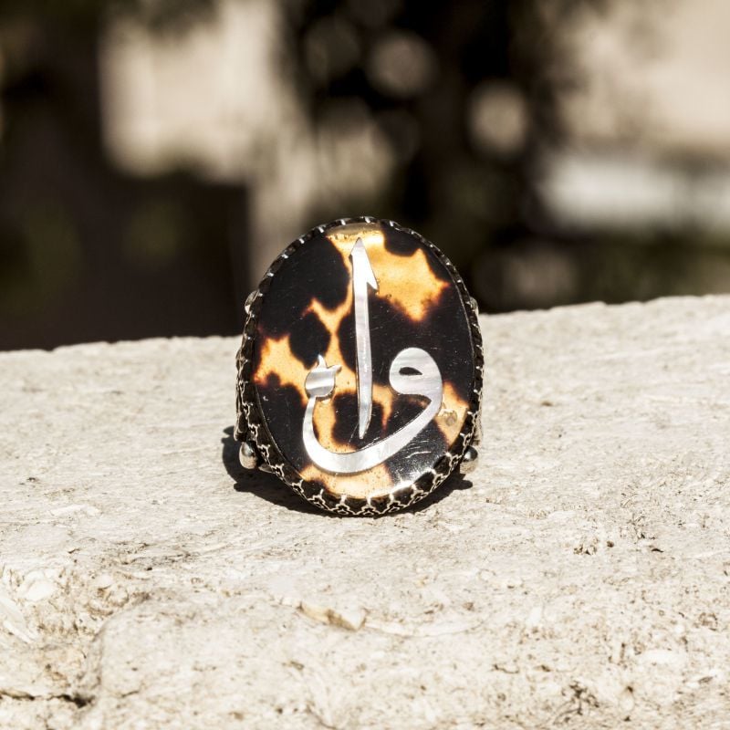Bağa Üzeri Sedef Kakma Vav Elif El İşi Yüzük |