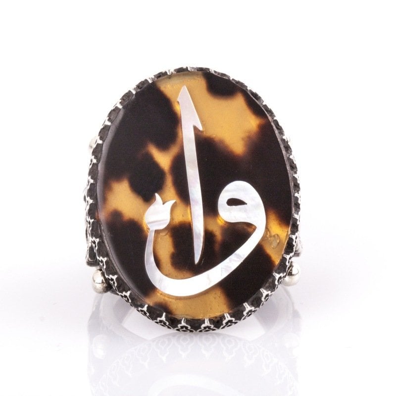 Bağa Üzeri Sedef Kakma Vav Elif El İşi Yüzük