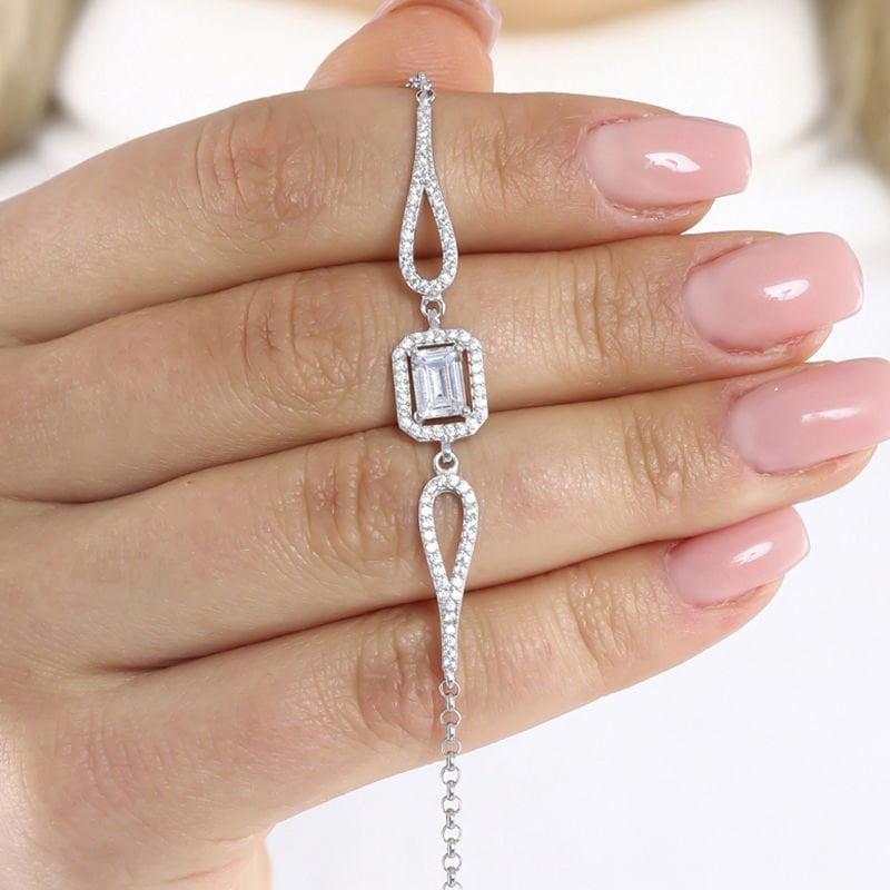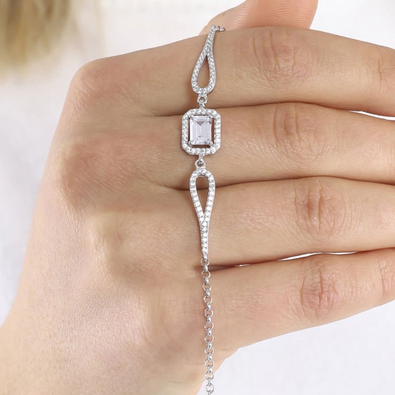 Baget Taşlı Dikdörtgen Model Gümüş Bileklik