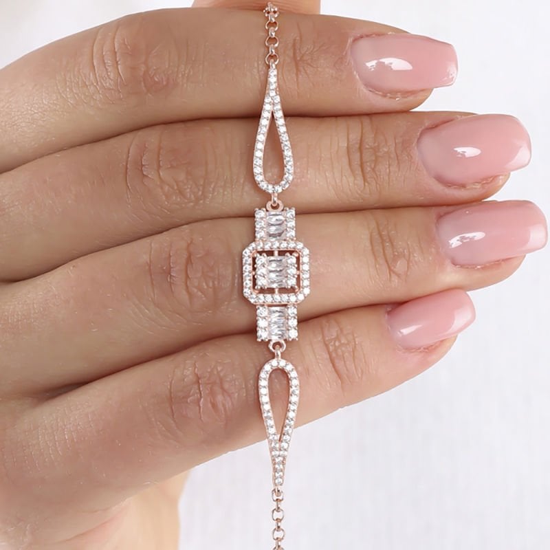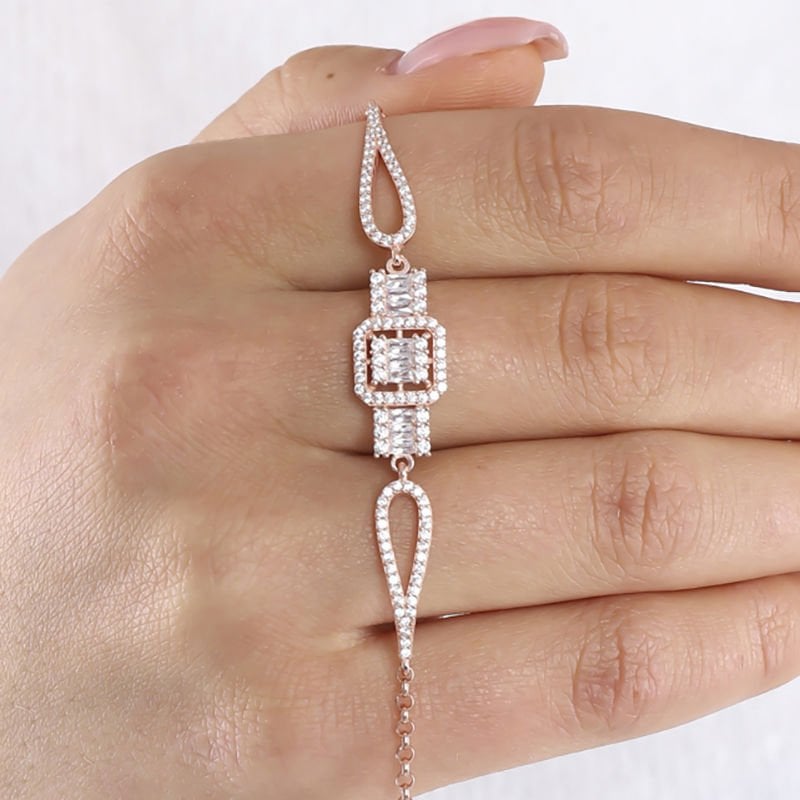 Baget Taşlı Dikdörtgen Model Gümüş Bileklik