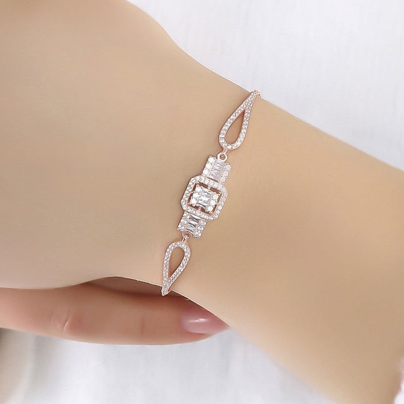 Baget Taşlı Dikdörtgen Model Gümüş Bileklik |