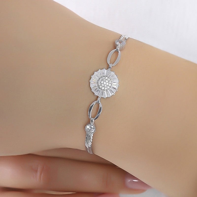Baget Taşlı Papatya Model Gümüş Bileklik |
