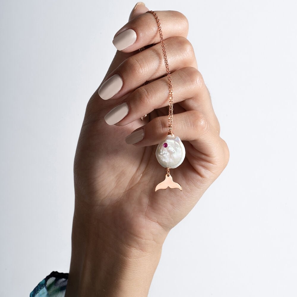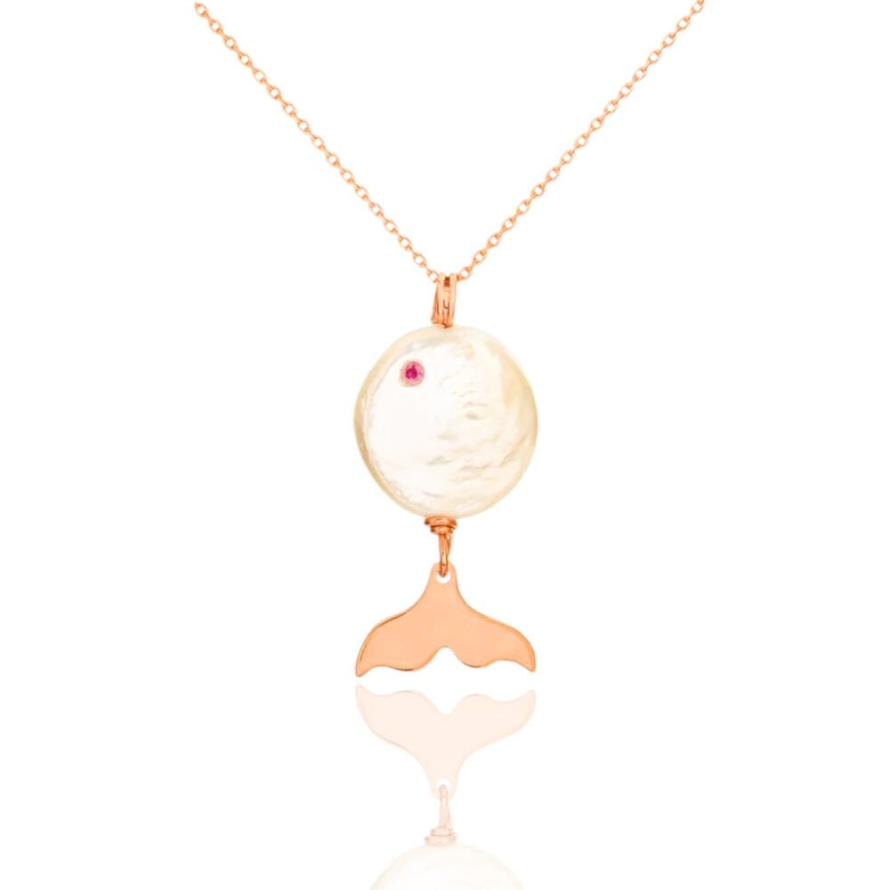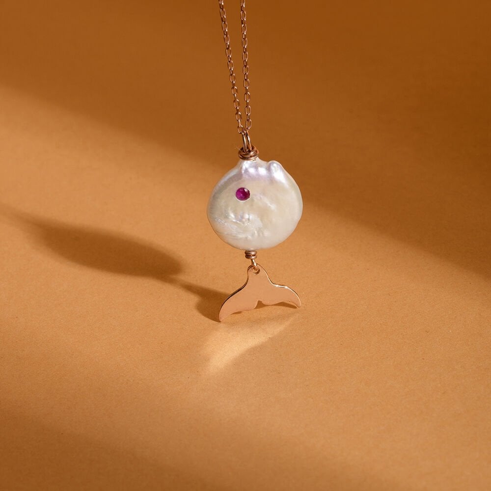Doğanın zarafetini yansıtan bu özel tasarım kadın kolyesi, orijinal inci taşı, gümüş malzeme ve benzersiz balık modeli ile göz alıcı bir şıklık sunuyor. El işçiliği ve özel tasarım detayları, bu kolyeyi özel kılar.