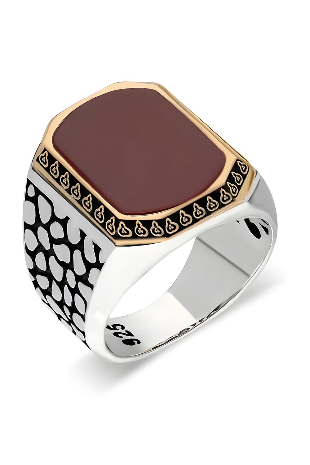 Benekli Model Akik Taşlı Gümüş Erkek Yüzük |