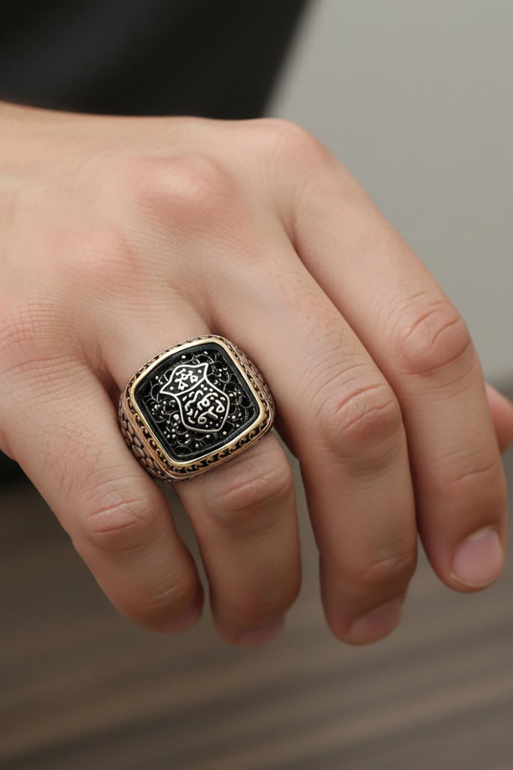 Yüzük, kenar kısımlarındaki işlemeleri ve minimal tasarımı ile dikkat çekmektedir.