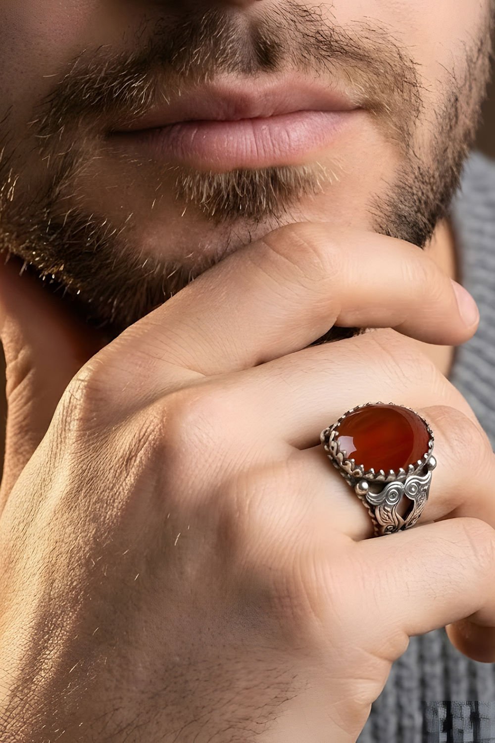 Bora Model El İşi Akik Taşlı Gümüş Yüzük