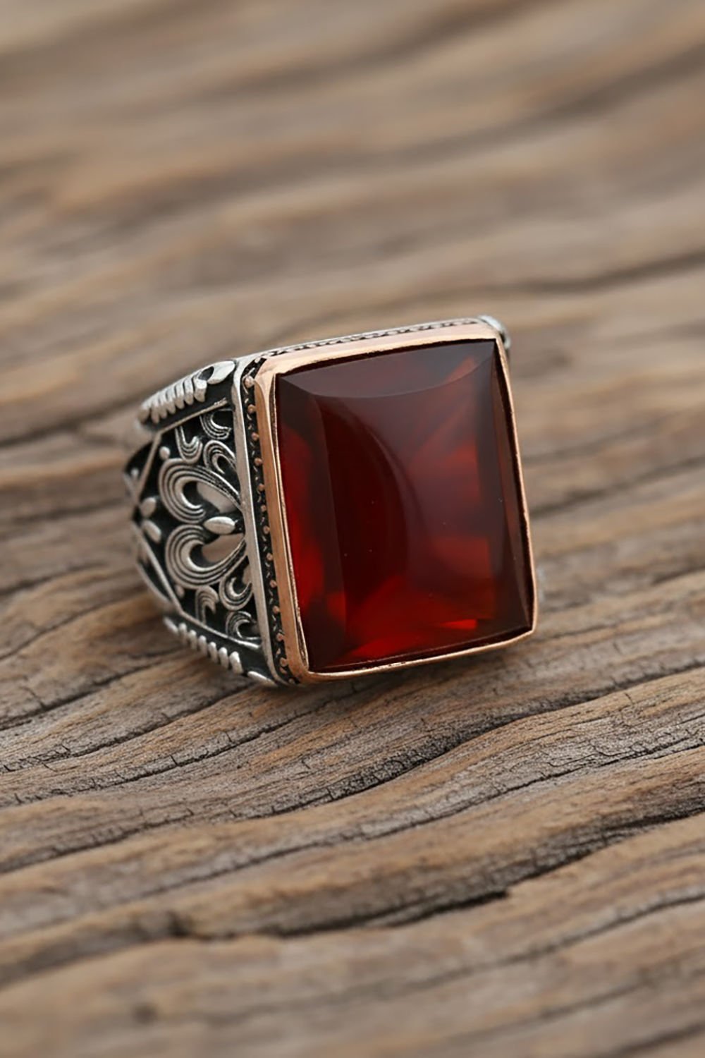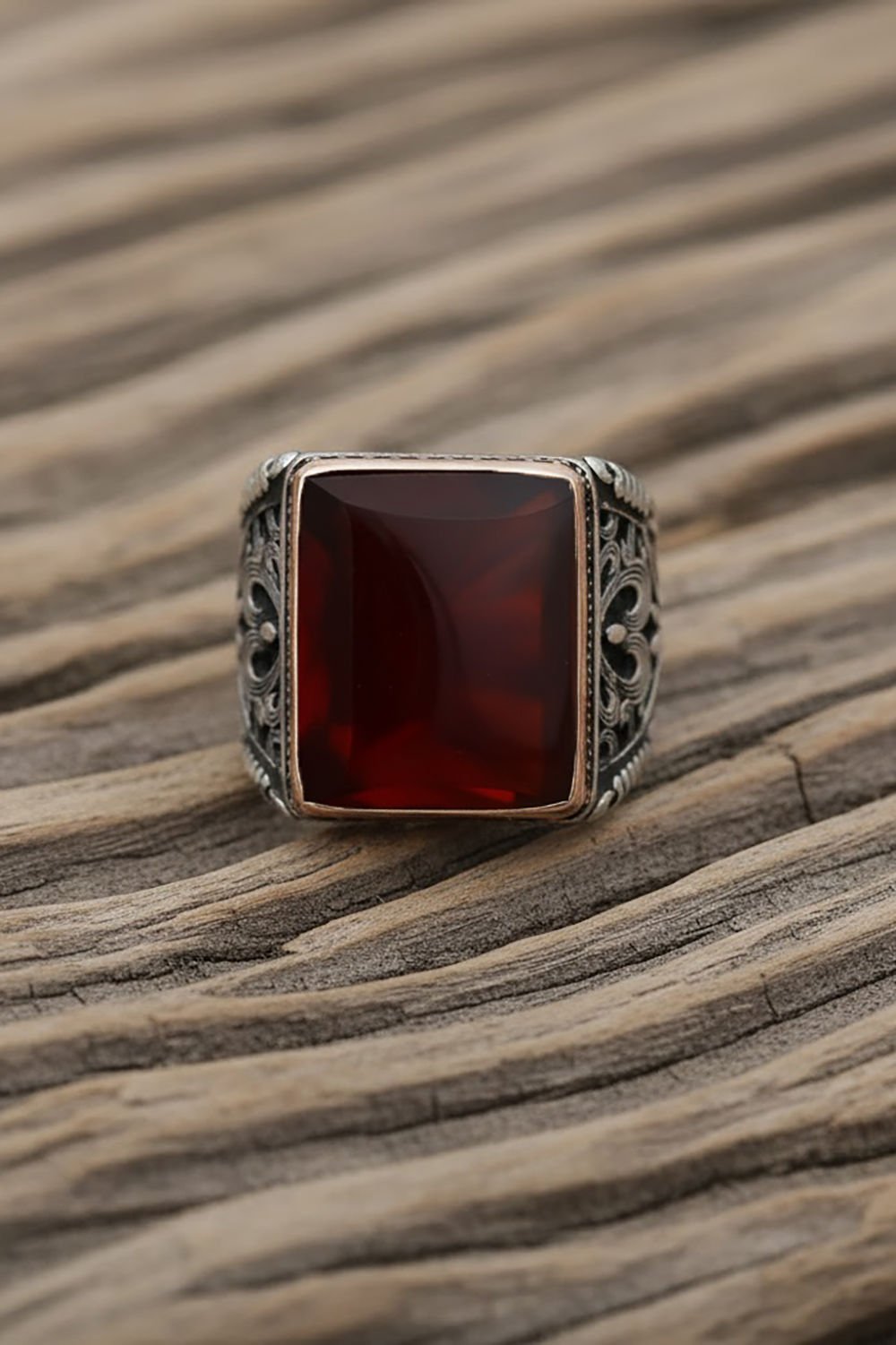 Büyük Boy Dikdörtgen Model Akik Taşlı Gümüş Yüzük