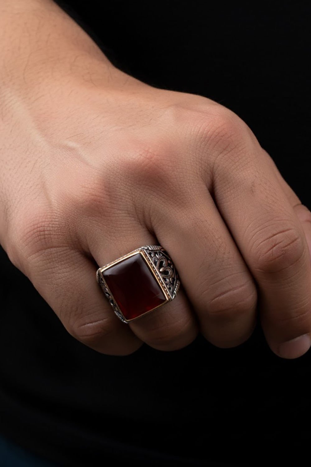 Büyük Boy Dikdörtgen Model Akik Taşlı Gümüş Yüzük |