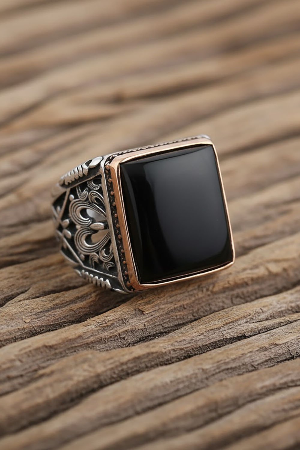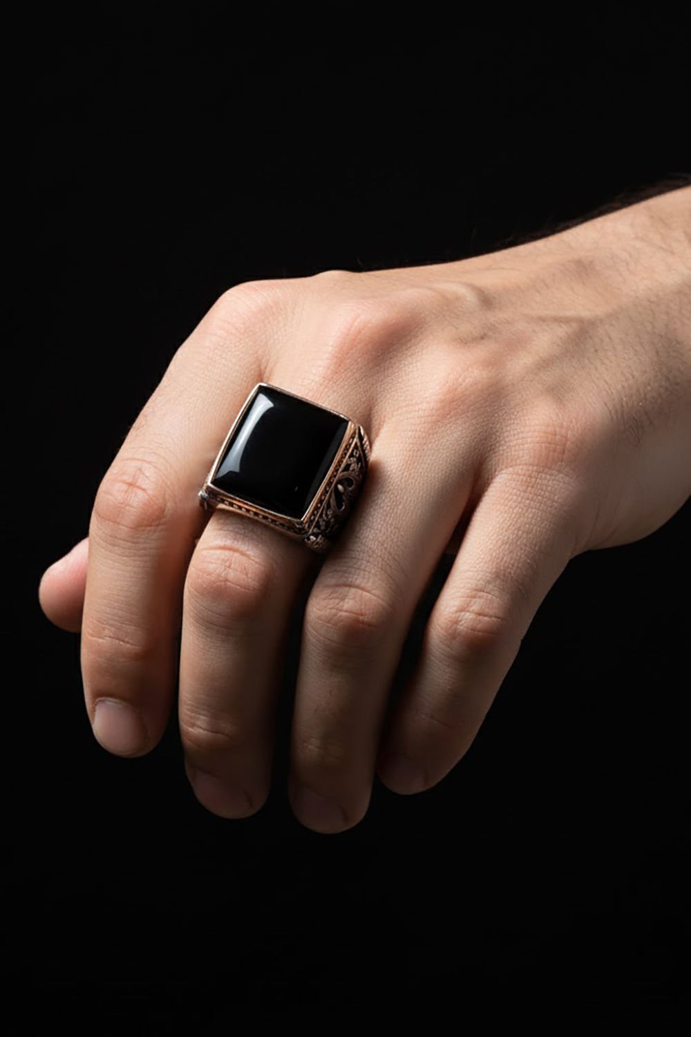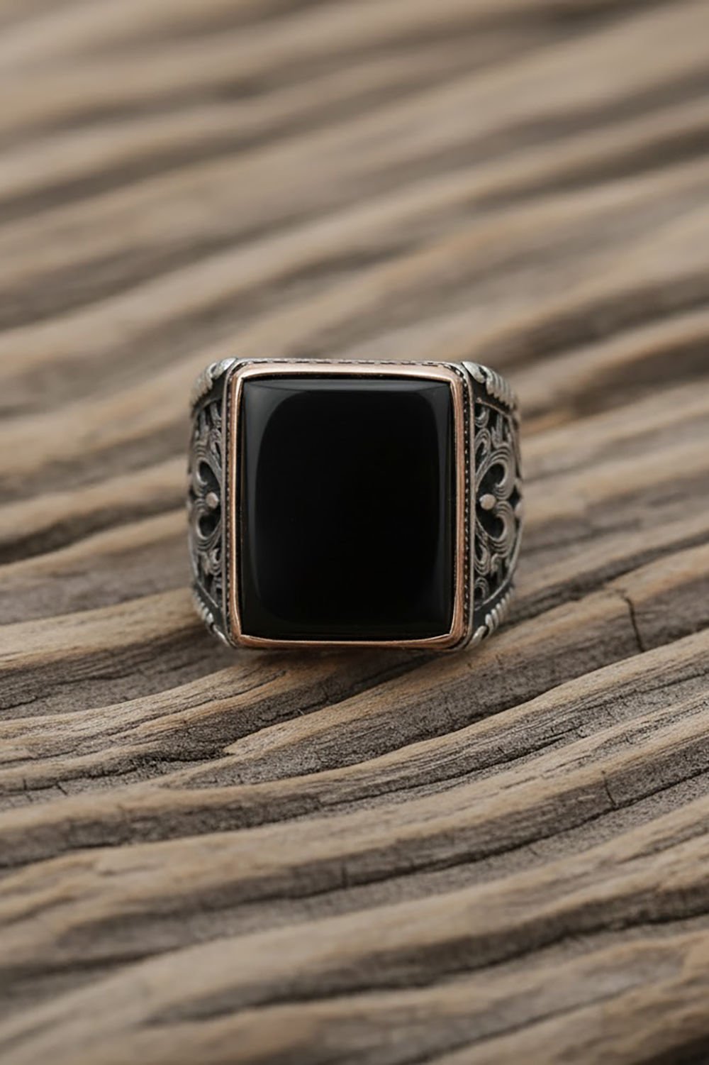 Büyük Boy Dikdörtgen Model Oniks Taşlı Yüzük