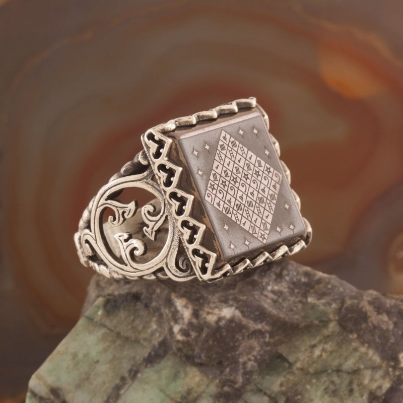 - Özel İşçilik: Yüzüğün detayları, özel işçilikle kazıma yapılarak kişiselleştirilmiştir. Celcelütiye yazısı, yüzüğe mistik bir hava katar.