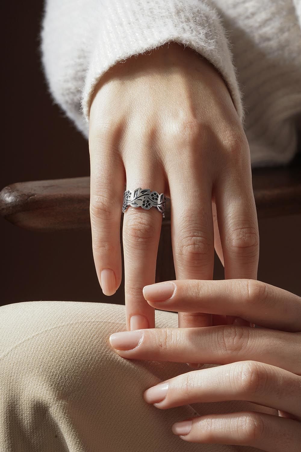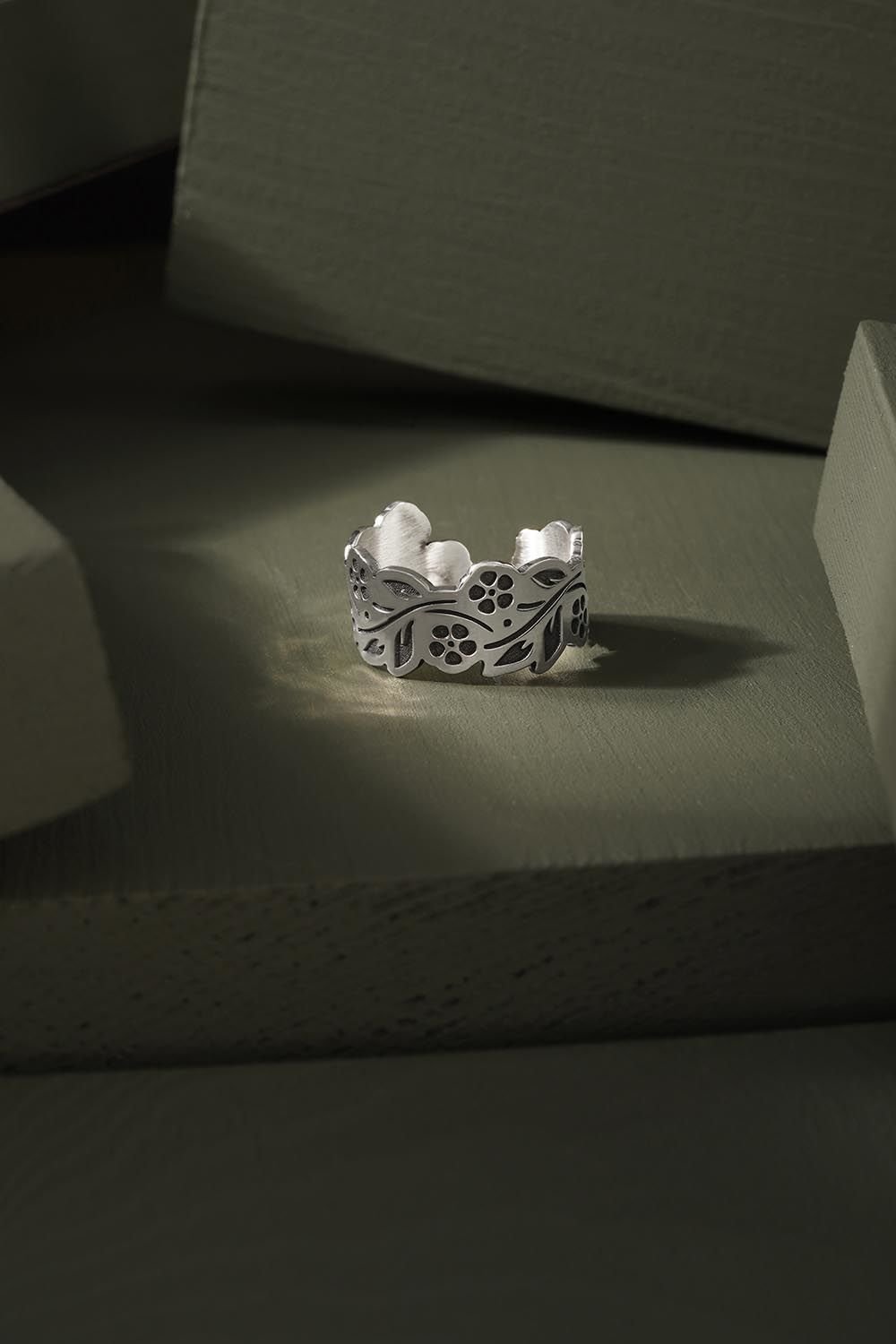 Çiçekli Sarmaşık Model Ayarlanabilir Gümüş Yüzük