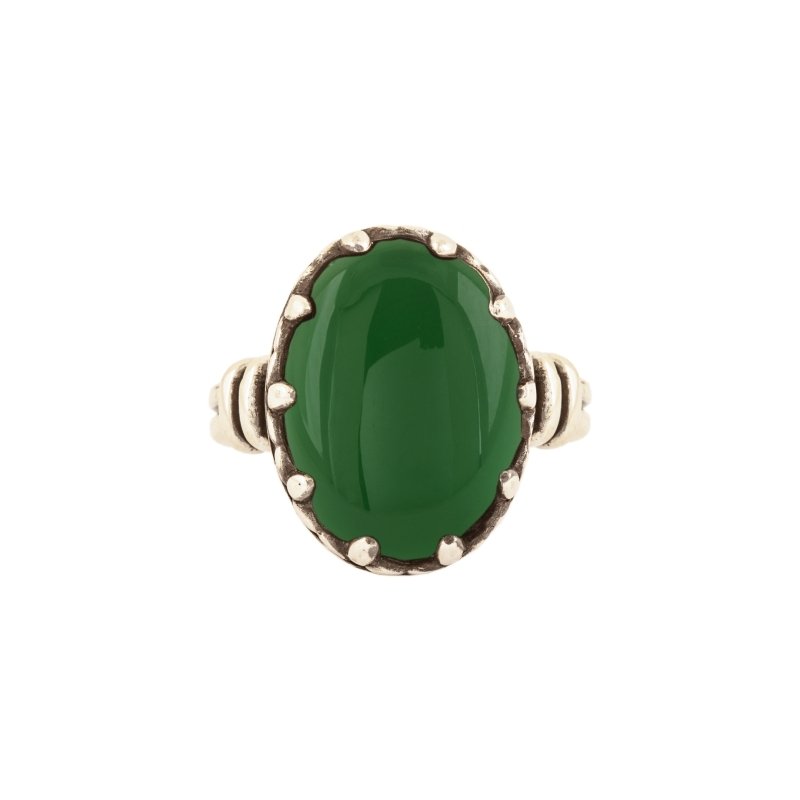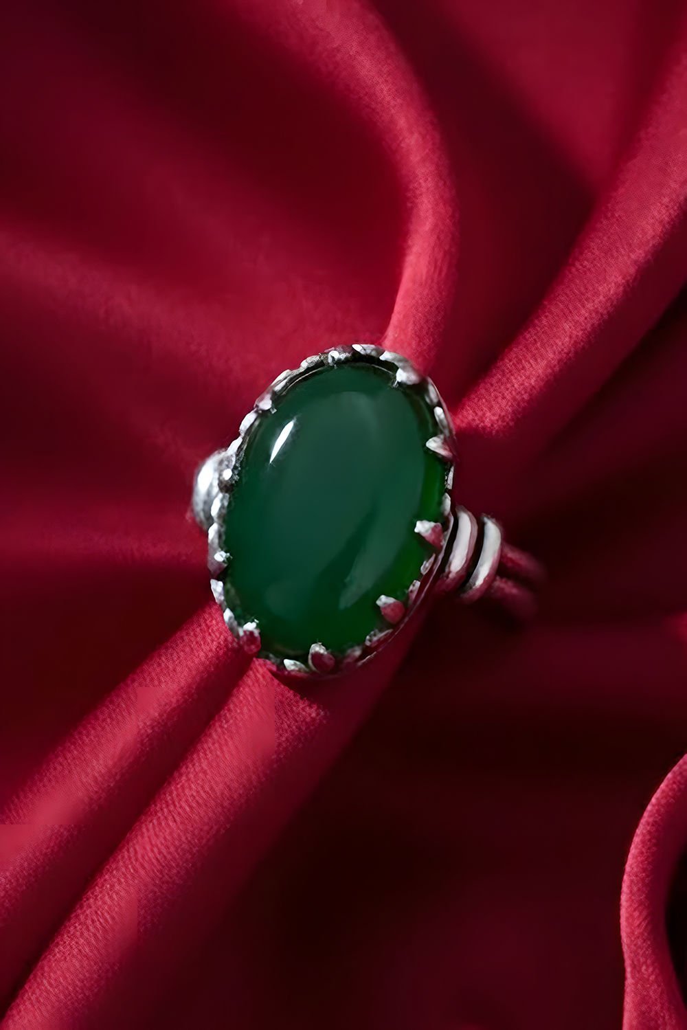Çift Kol Model Yeşil Akik Taşlı El İşi Yüzük |