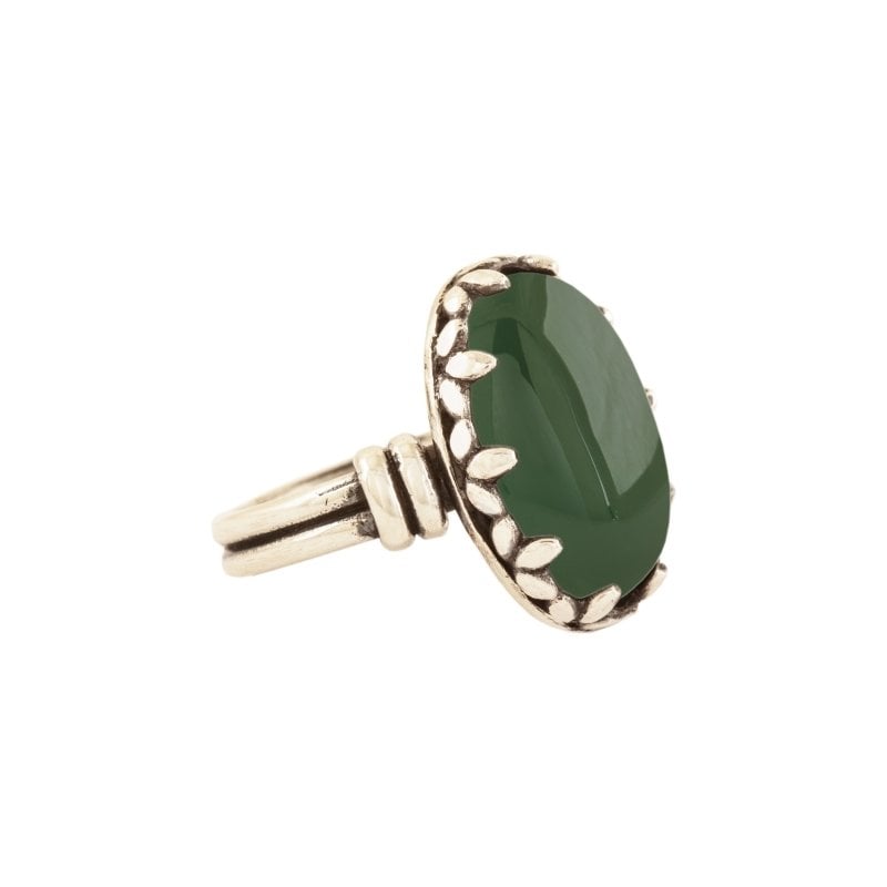 Doğanın taze enerjisini yansıtan bu özel gümüş yüzük, orijinal yeşil akik taşı ve 925 ayar gümüş ile el işçiliği ve çift kol modeli ile özenle tasarlandı. Bu benzersiz yüzük, parmaklarınıza doğanın canlılığını ve zarafetini taşıyor. Detaylarına özenle işlenen bu özel tasarım, günlük stilinize sofistike bir dokunuş ekliyor.