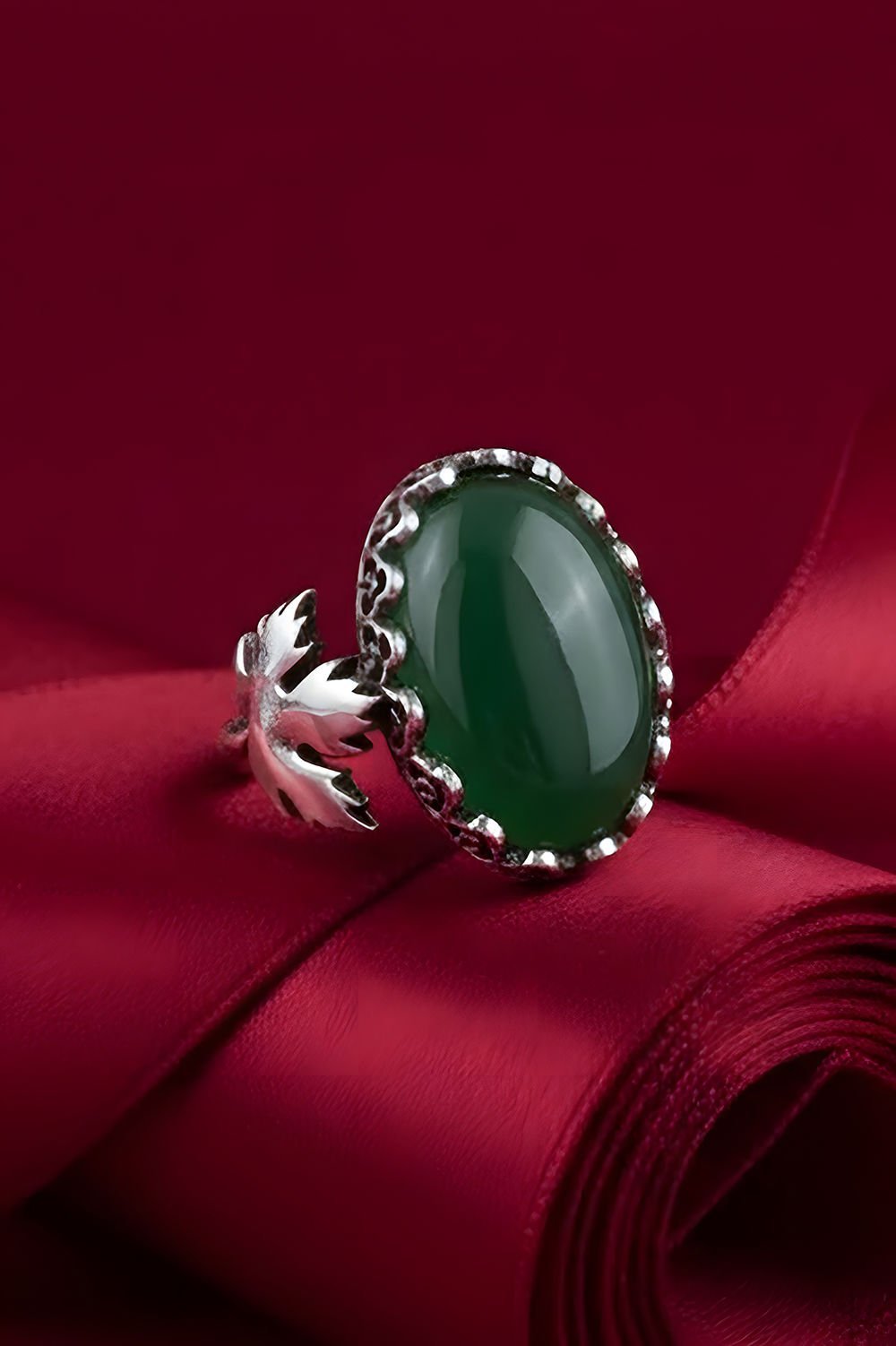 Doğanın yeşil güzelliklerinden ilham alan bu özel gümüş yüzük, natural yeşil akik taşı ve usta el işçiliği ile zarif bir kurdele modeli ile tasarlandı. Bu eşsiz yüzük, parmaklarınıza doğanın tazeliğini ve zarafetini taşıyor. Detaylarına özenle işlenen bu özel tasarım, günlük stilinize sofistike bir dokunuş ekliyor.