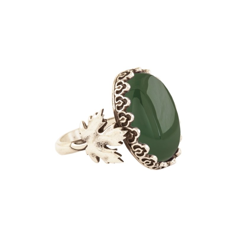 Çınar Yaprağı Yeşil Akik Taşlı El İşi Gümüş Yüzük |