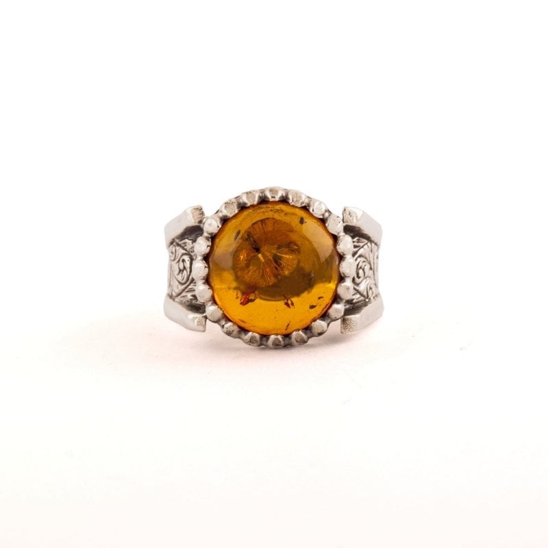 Damla Kehribar Taşlı El İşi Gümüş Yüzük |