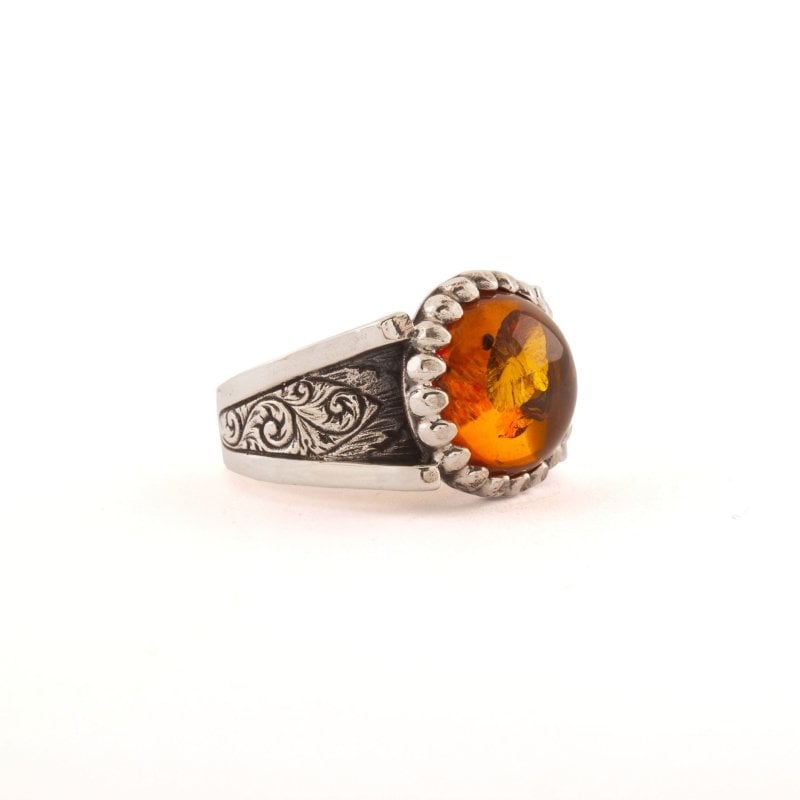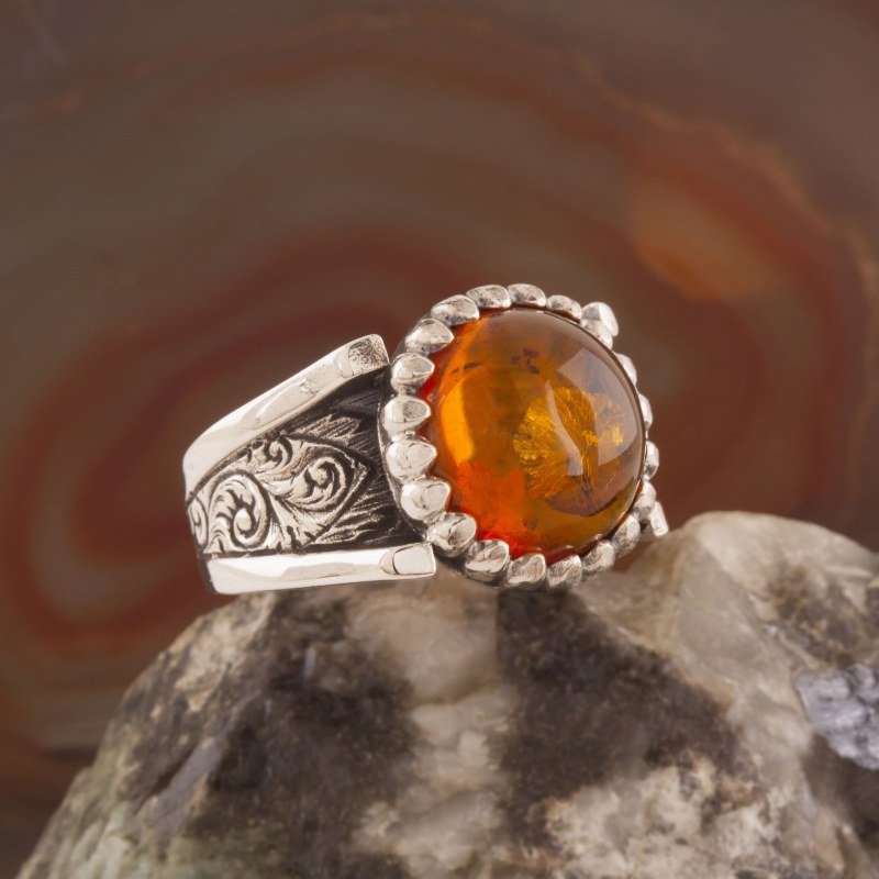 Damla Kehribar Taşlı 925 Ayar Gümüş Erkek Yüzük: Estetiği ve Zarafeti Bir Araya Getirin!