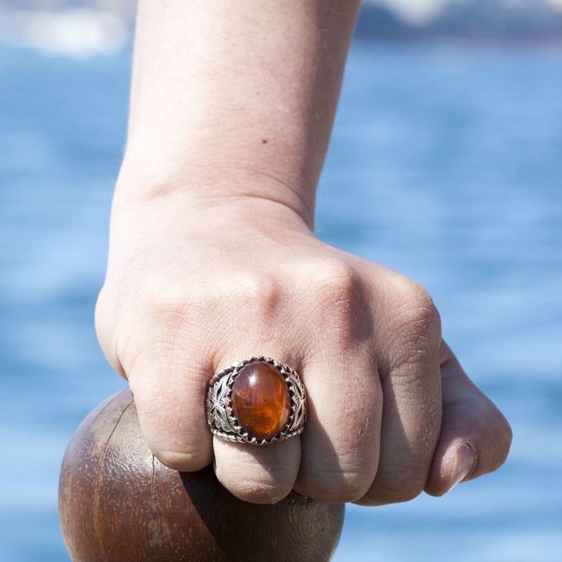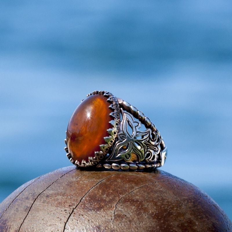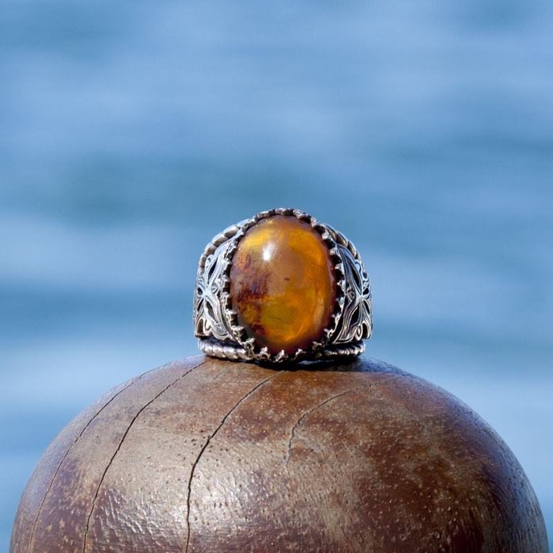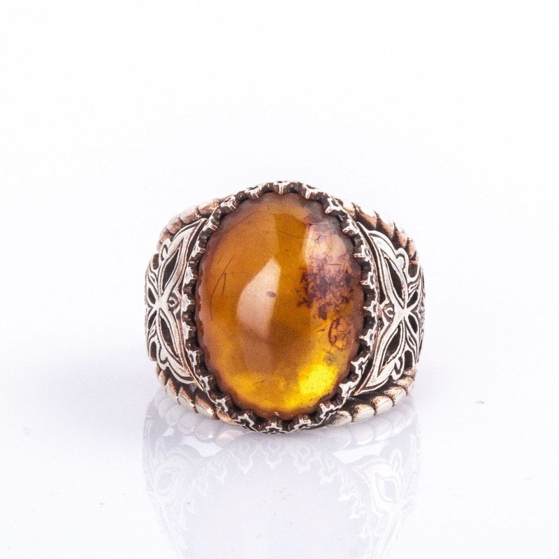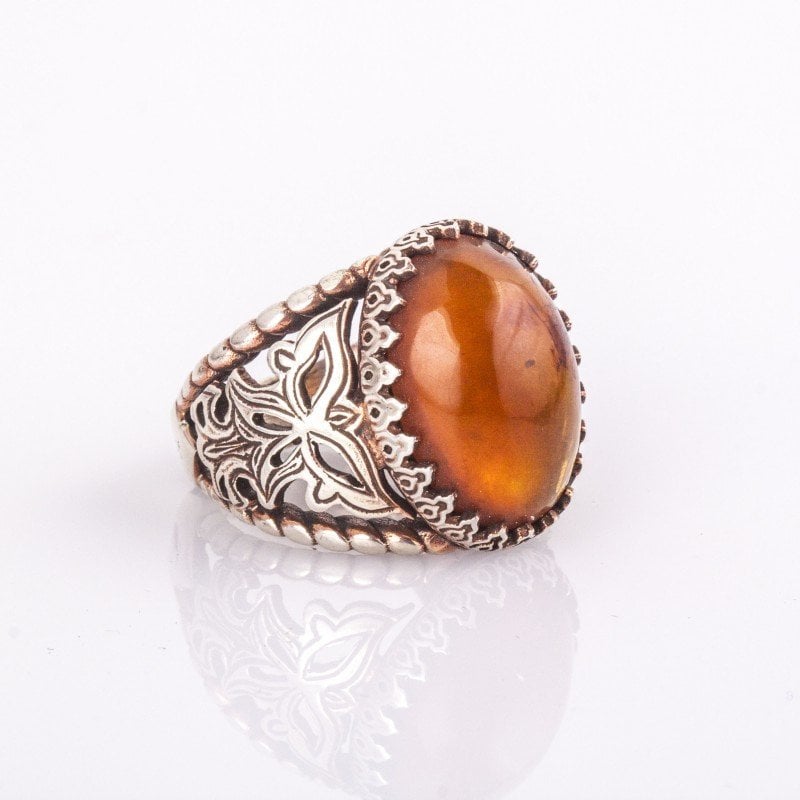 Damla Kehribar El İşi Gümüş Yüzük |