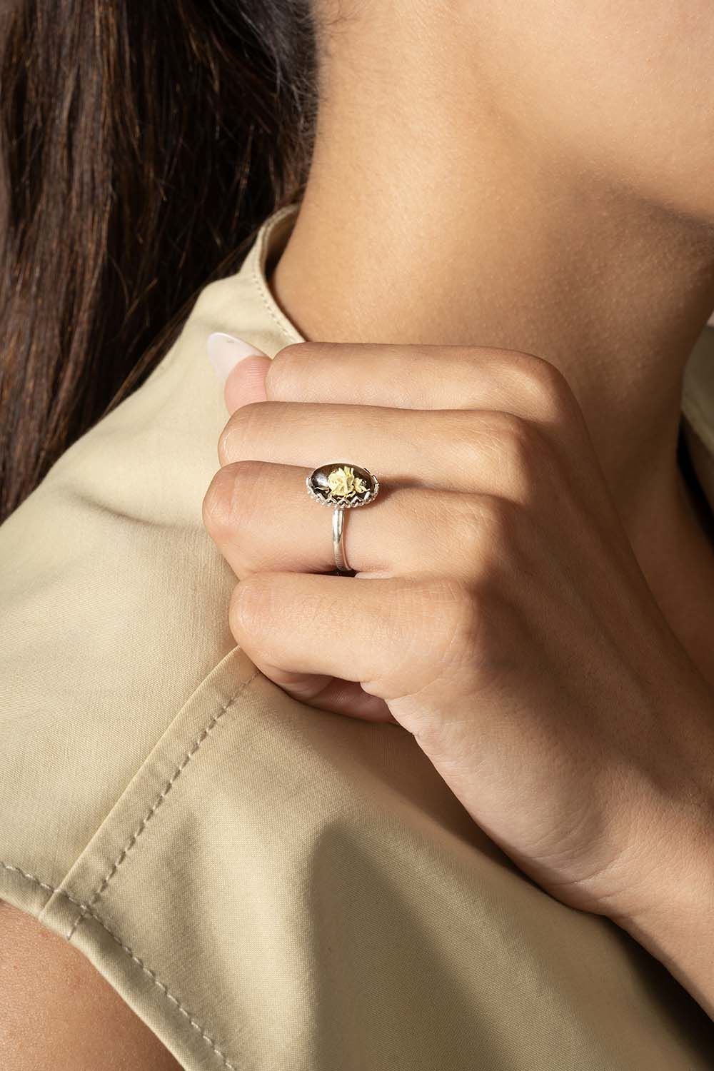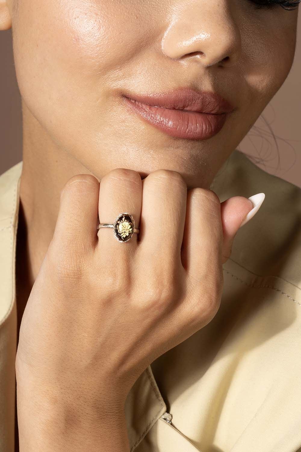 Yüzüğün zarif yapısını tamamlayan gül deseni, doğanın güzellikleriyle tasarlanan bu parçaya romantik bir dokunuş katıyor. Günün her anında kullanıma uygun olan bu yüzük, parmaklarınıza zarif bir dokunuş katacak. Doğanın enerjisiyle tasarlanan bu parça, özel anlarınıza anlam katacak.