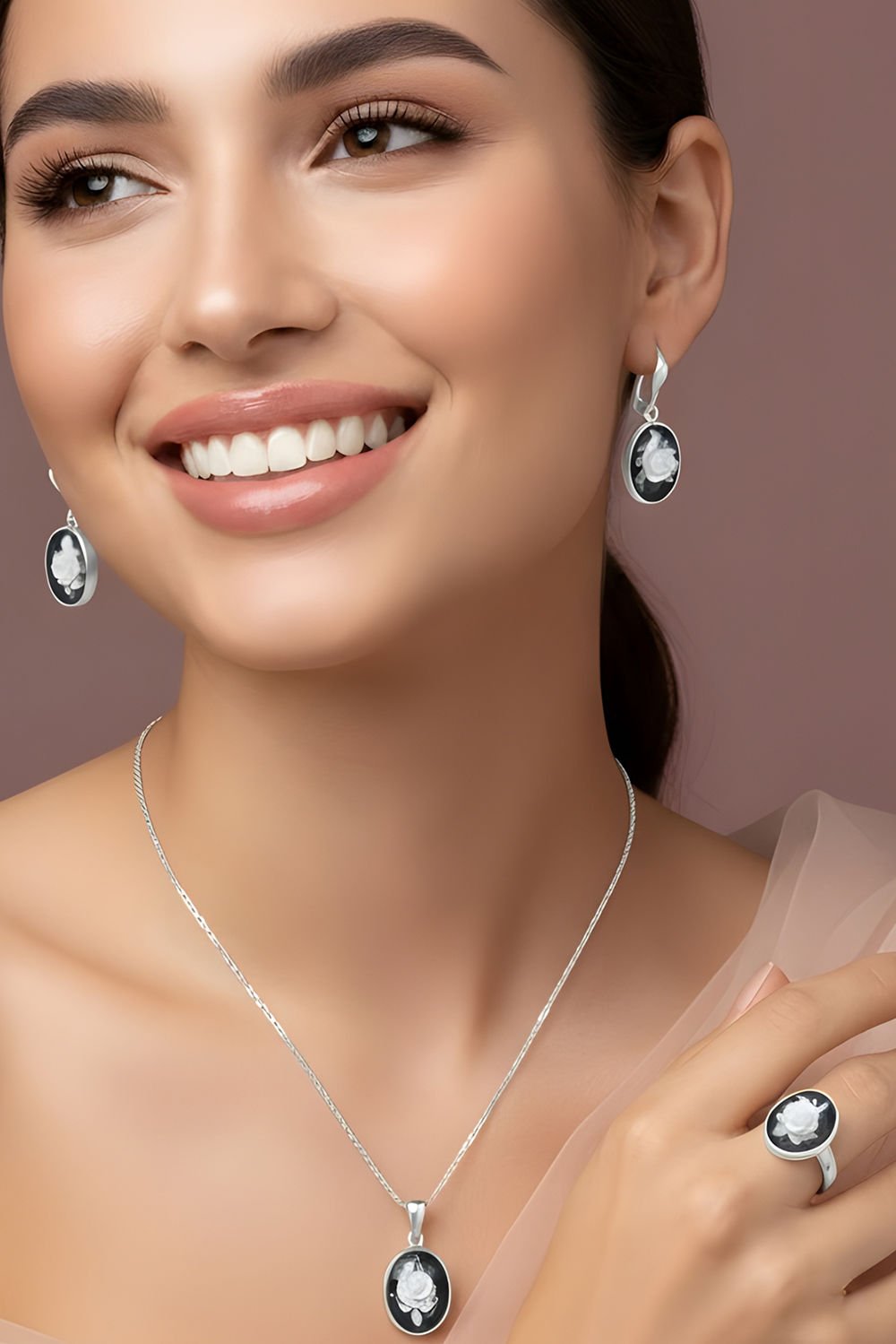- Özel Tasarım: İçine oyma gül motifleriyle süslenmiş özel bir tasarıma sahip olan bu takı seti, benzersiz bir şıklık sunuyor.