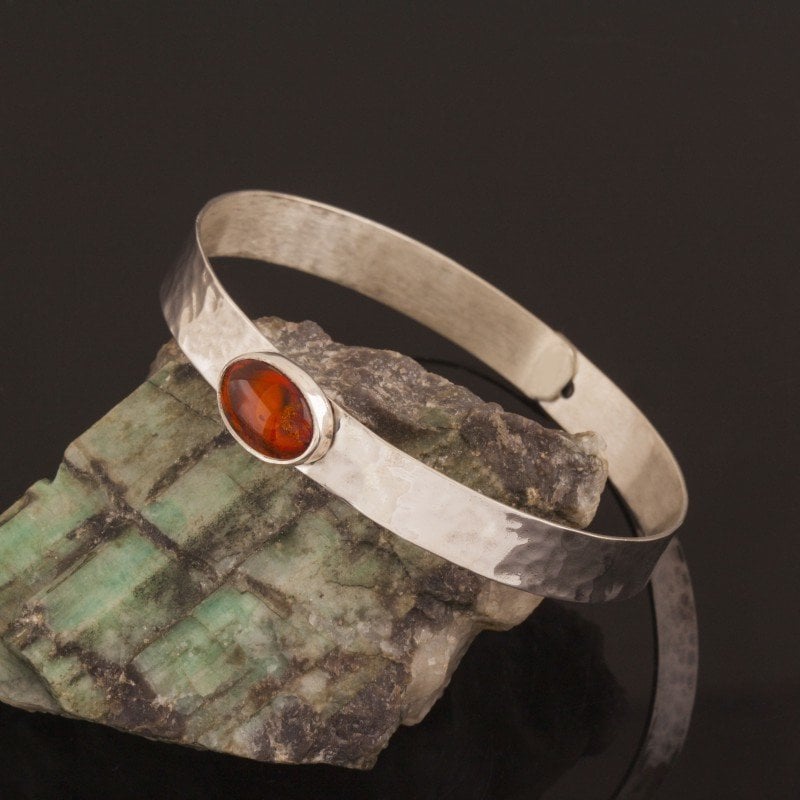Kehribar Taşlı El İşi Kelepçe Model Bileklik