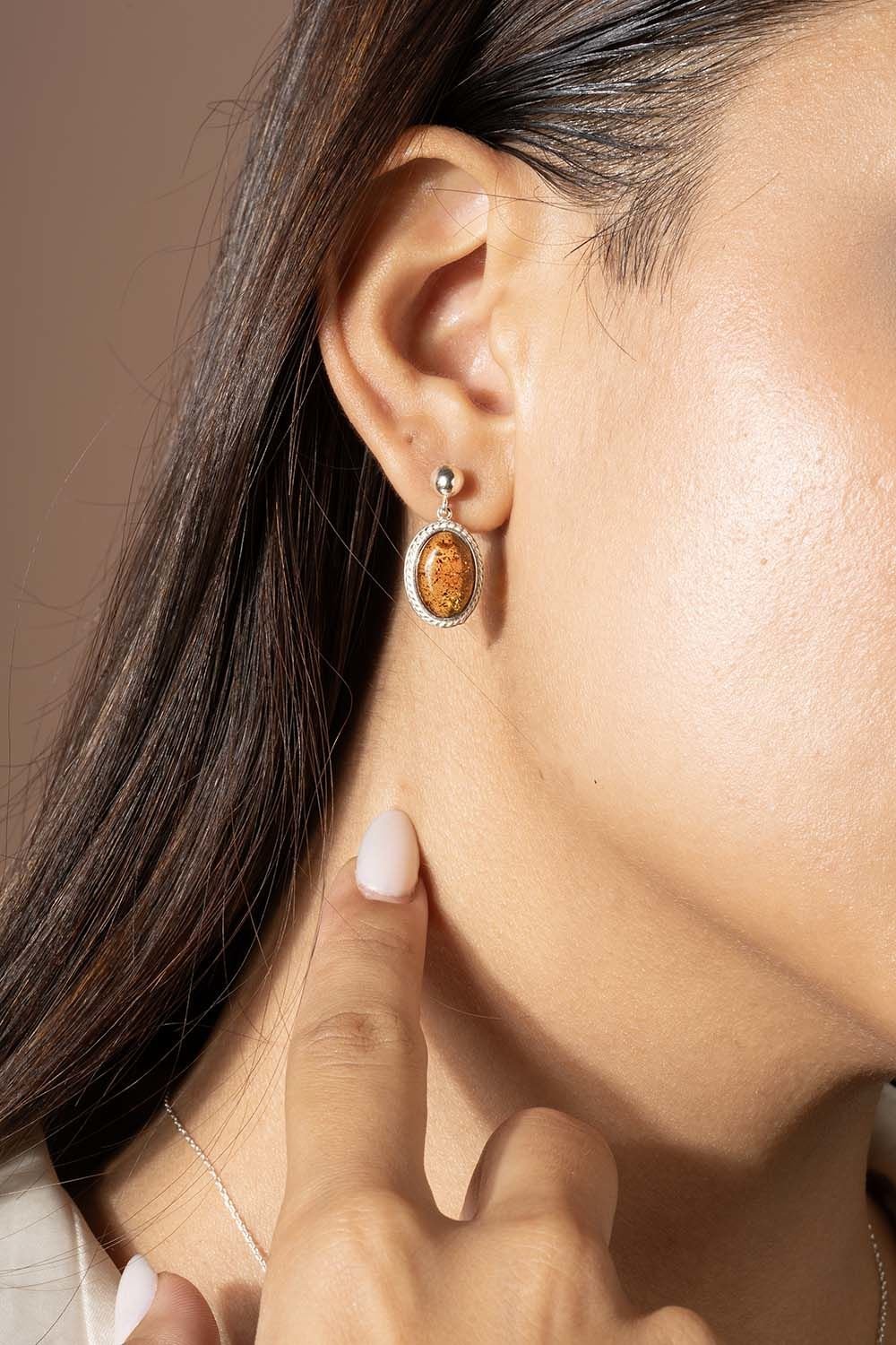 Damla Kehribar Taşlı Minimal Gümüş Küpe |