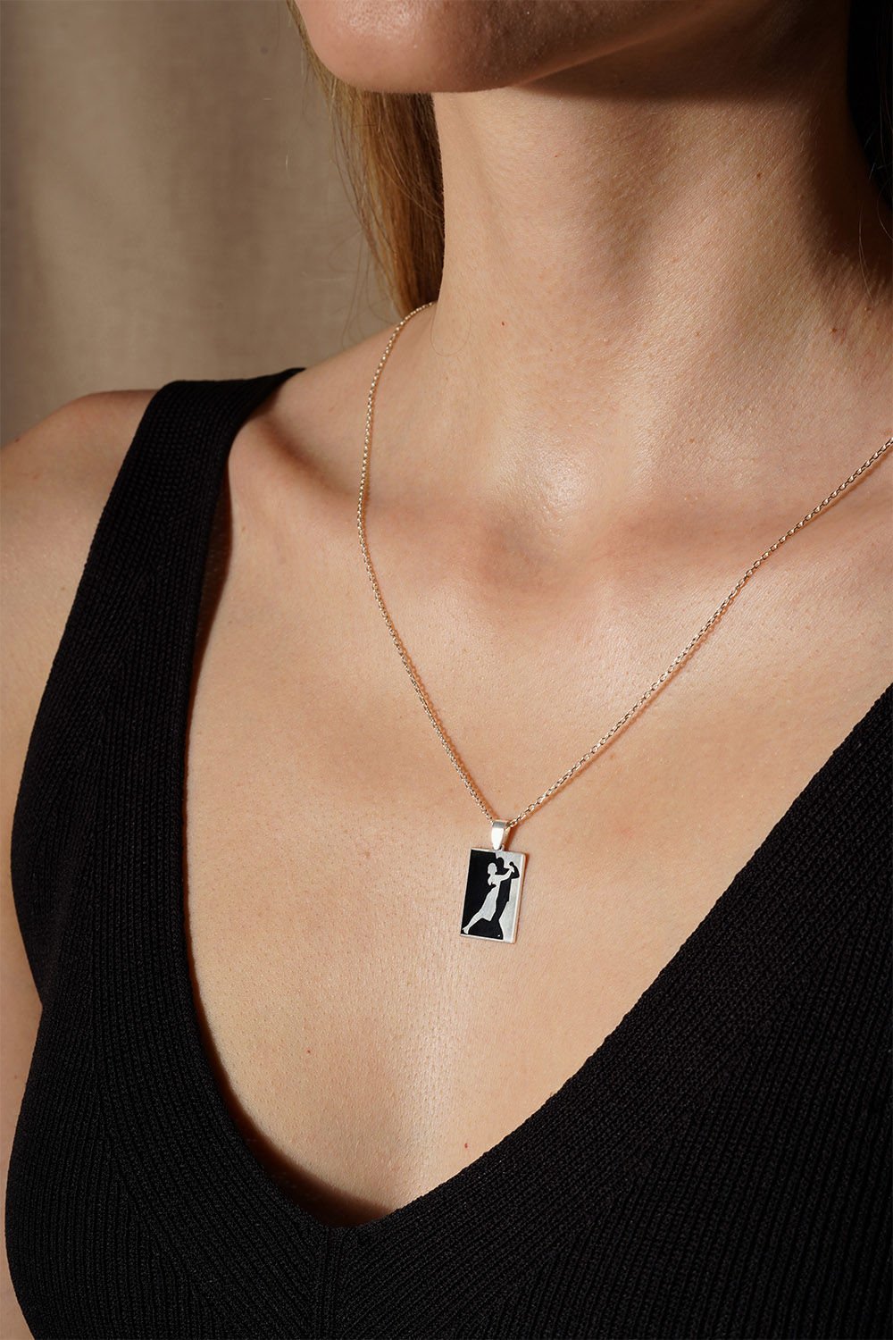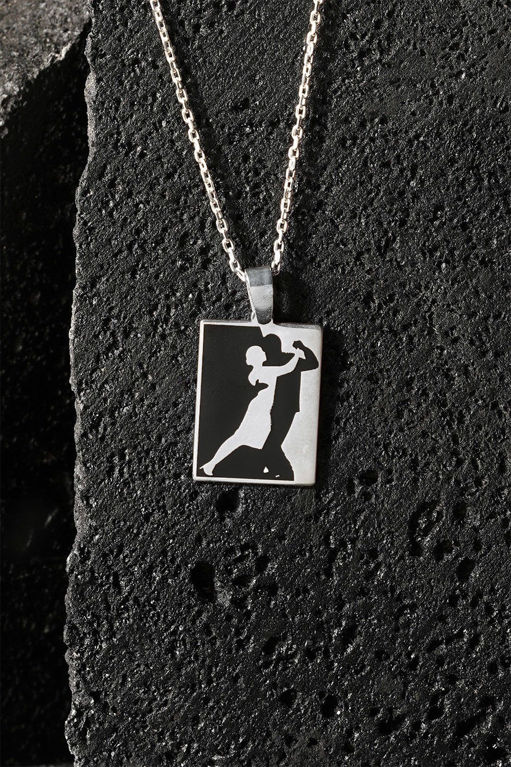 Dans Eden Çift Model Siyah Mineli Gümüş Kolye |