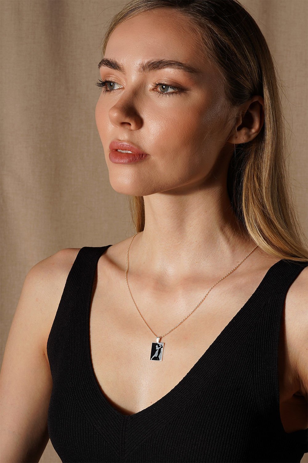 Romantik ruhunuzu yansıtan bu zarif siyah mineli gümüş kolye, kadınların gönlünde taht kuruyor. 925 ayar gümüşten özenle işlenmiş olan bu kolye, şıklığı ve zarafeti bir araya getiriyor. Siyah mine detaylarıyla zenginleştirilmiş olan tasarımı, her tarza uyum sağlıyor ve her yaş grubundan kadının beğenisini kazanıyor. Gündüzleri günlük şıklığınızı tamamlayacak kadar zarif, geceleyin ise romantik bir hava katacak kadar özel olan bu kolye, sevdikleriniz için harika bir hediye seçeneği de sunuyor.
