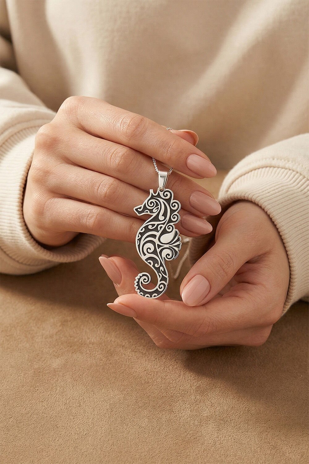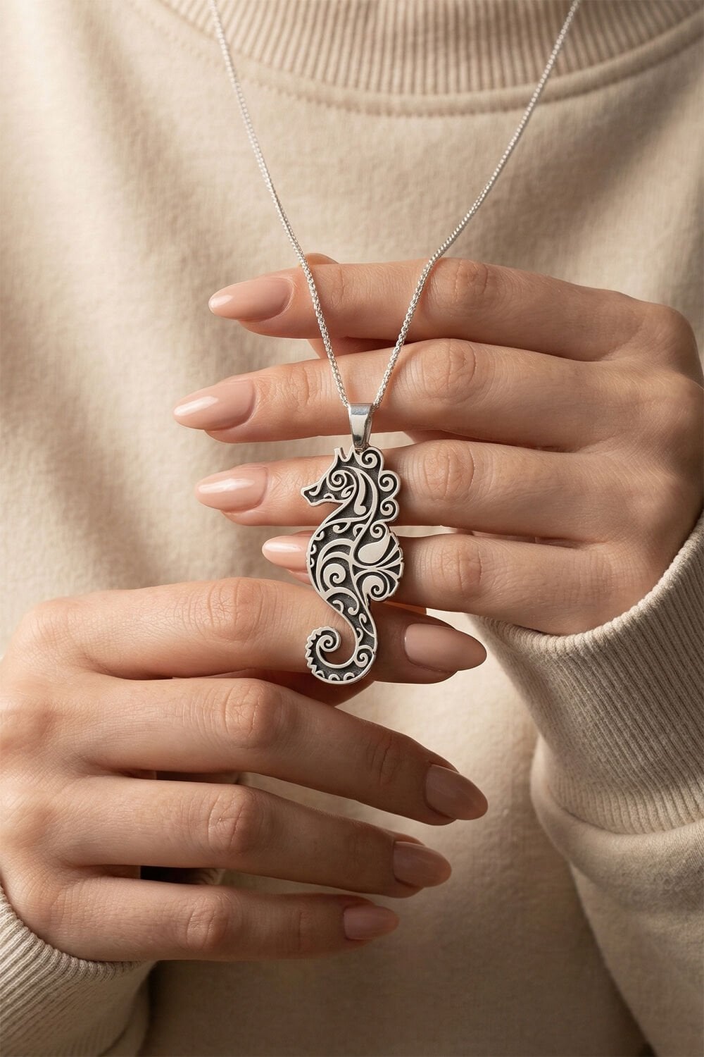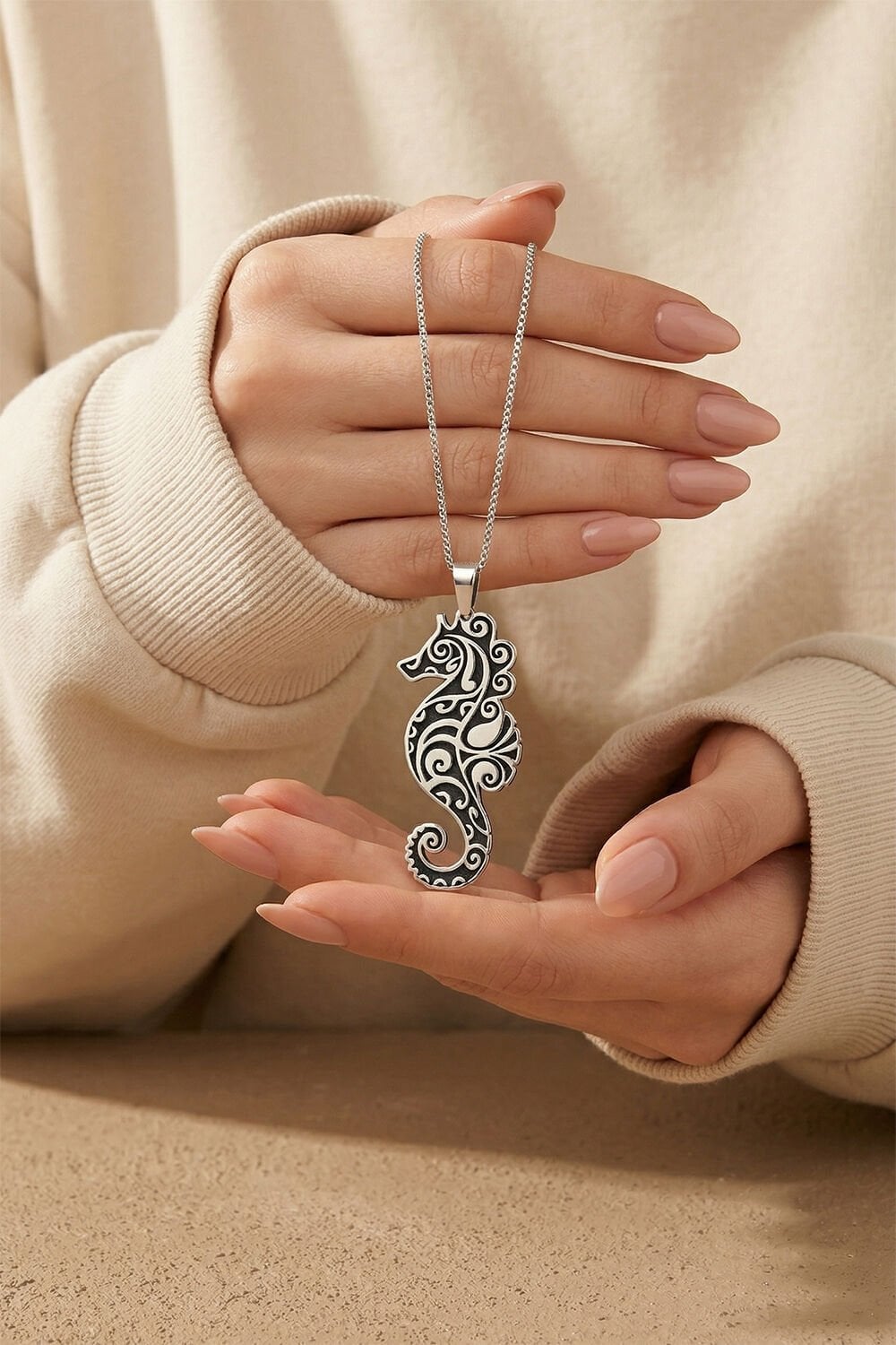 Deniz atı; sabrın, korumanın ve iyi şansın sembolüdür. Kendiniz için anlamlı bir parça ya da sevdikleriniz için unutulmaz bir hediye gümüş kolye arıyorsanız, bu özel tasarım tam size göre.