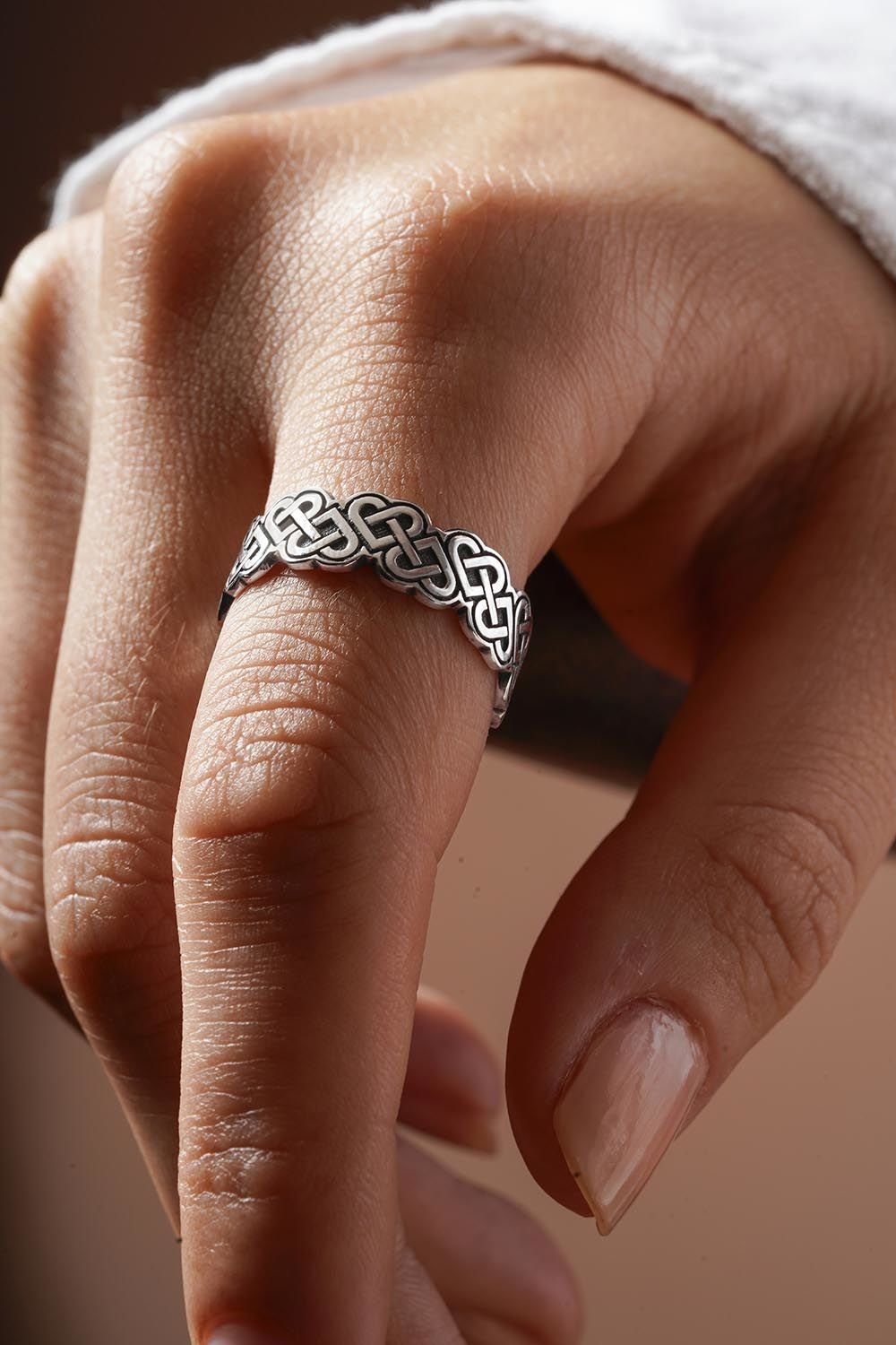 Düğümlü Kalp Model Ayarlanabilir Gümüş Yüzük